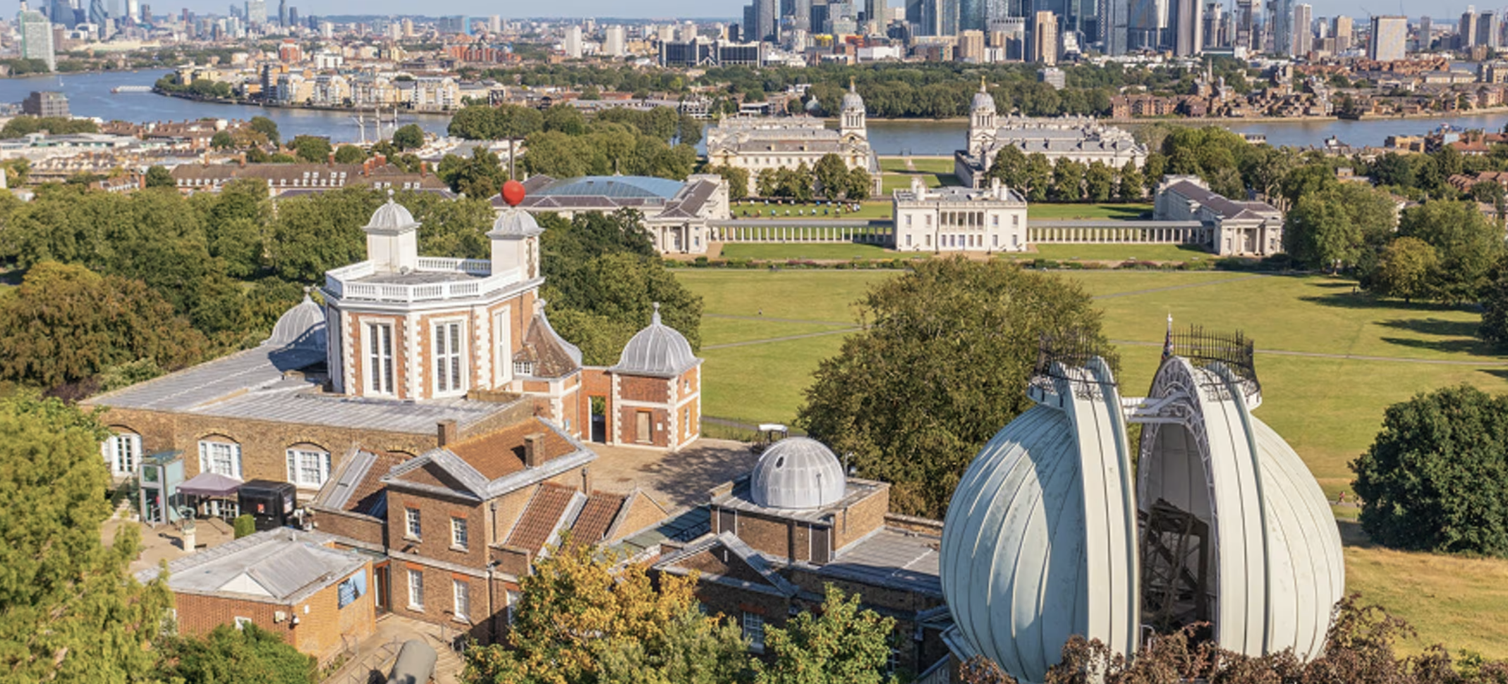 </figure>1. 近景为格林威治皇家天文台,中景王后宫,与远景的泰晤士河(图源网络)