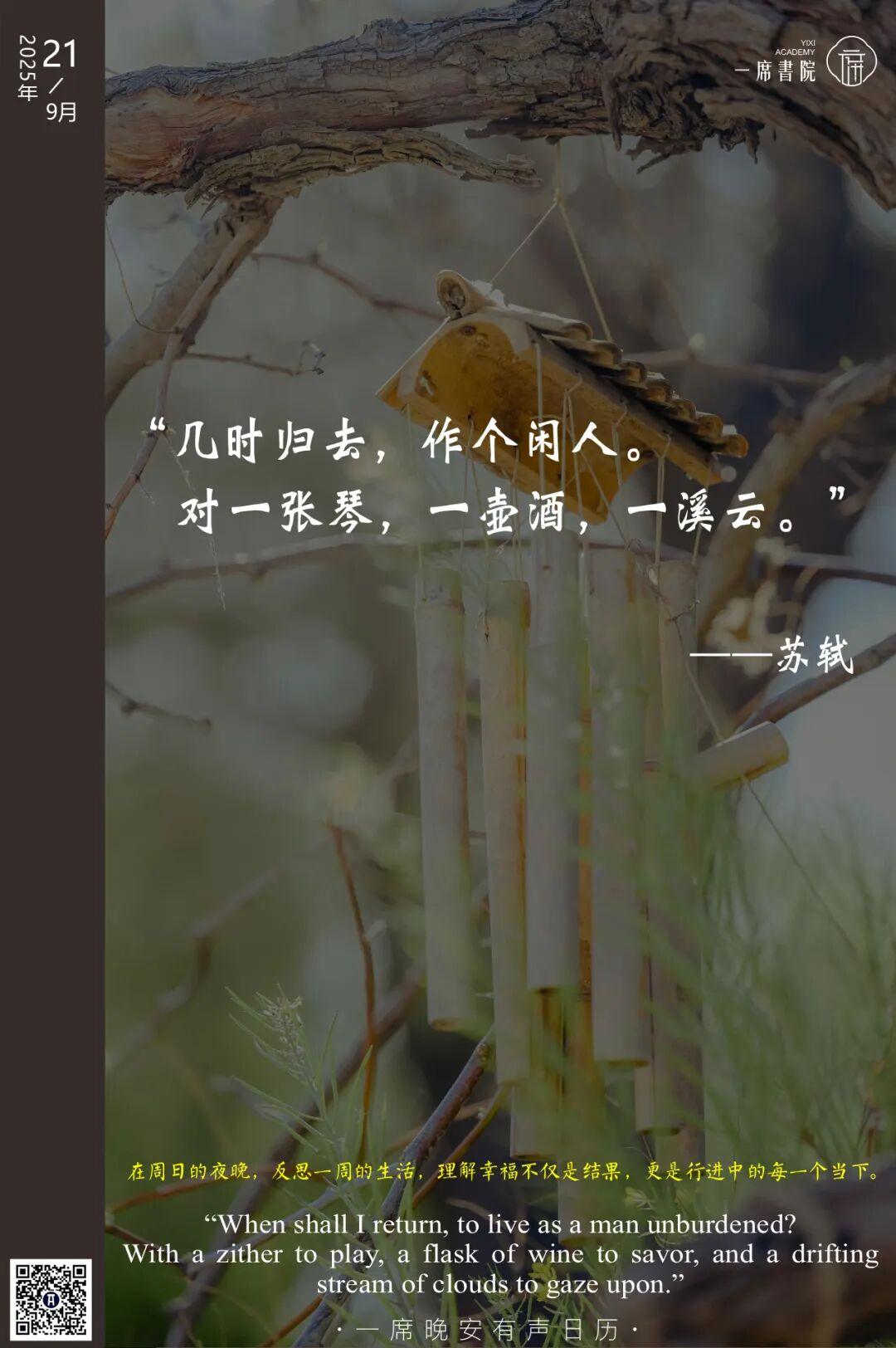 With a zither to play, a flask of wine to savor, and a drifting stream of clouds to gaze upon.”