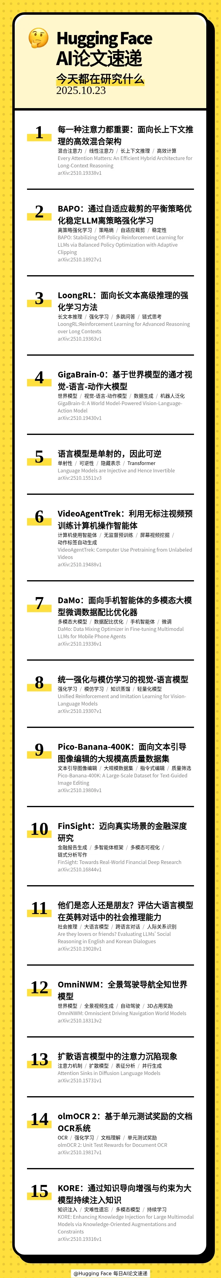 2025.10.23 | 线性注意力显存降十倍;动态裁剪PPO稳提分