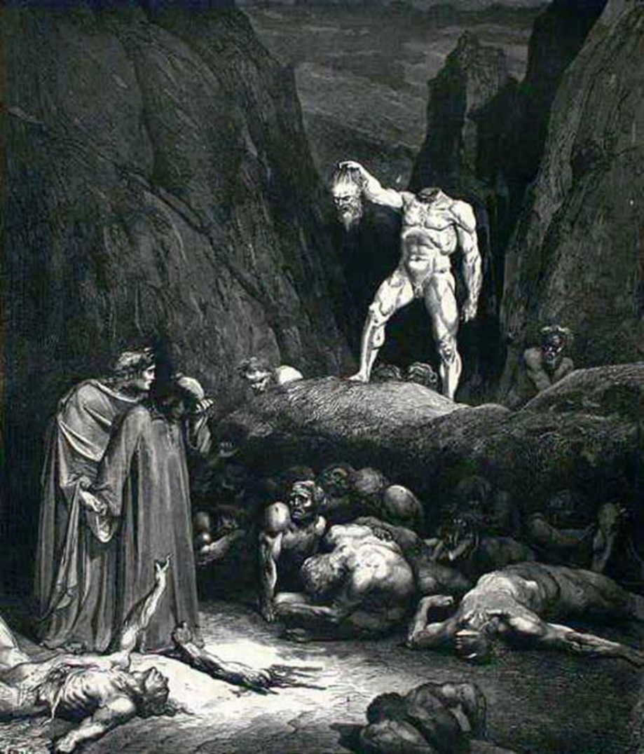 (Bertran de Born, demonstrating the principle of contrapasso, by Gustave Dore)