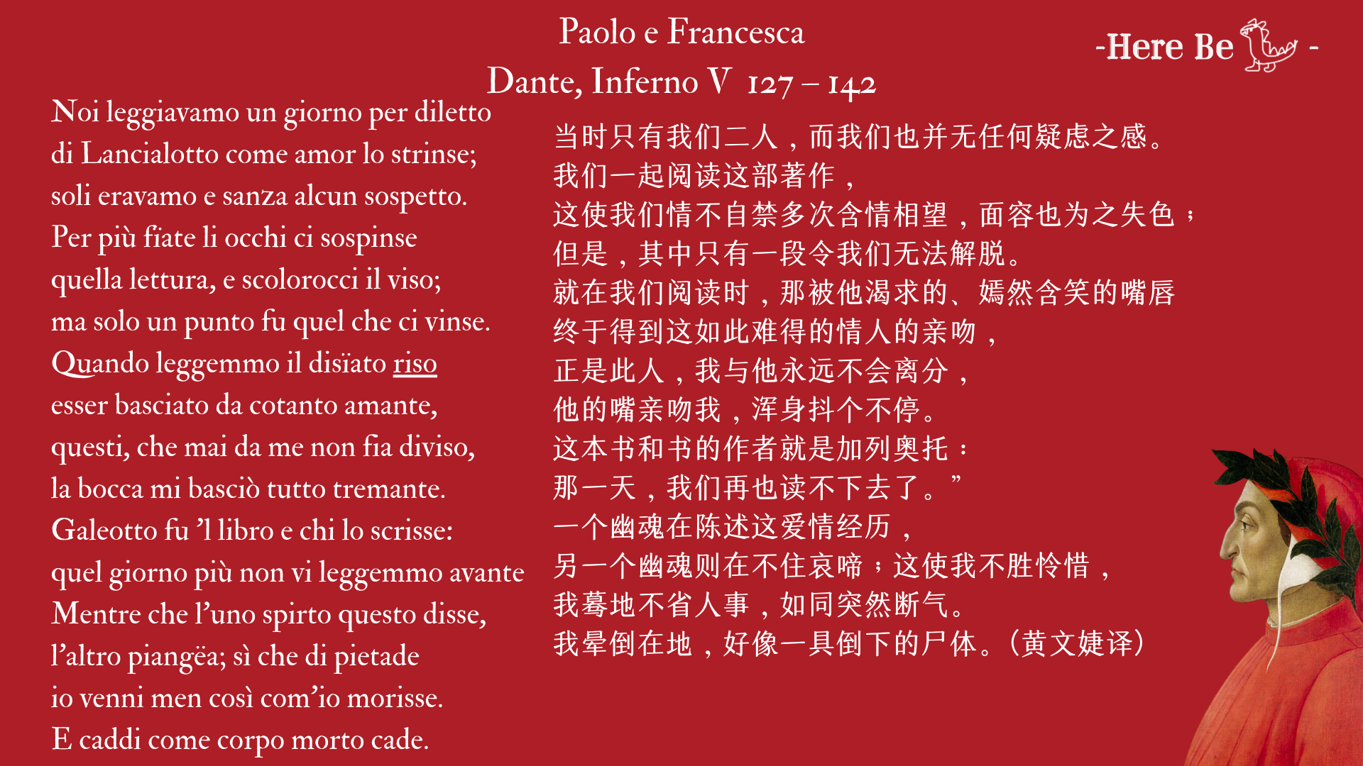 本期节目中,我们将从近期正在国内巡演的意大利音乐剧《神曲》(La Divina Comedia)出发,基于意大利语原文,细读这对悲剧情侣的命运。我们还将讨论但丁对自己作为“温柔新体”(dolce stil novo)爱情诗人的早期生涯的反思,但丁如何借弗朗切丝卡之手谈论“爱”(amor),以及中世纪文学/现实中典雅爱情(courtly love)体系的内部矛盾和外在危机。