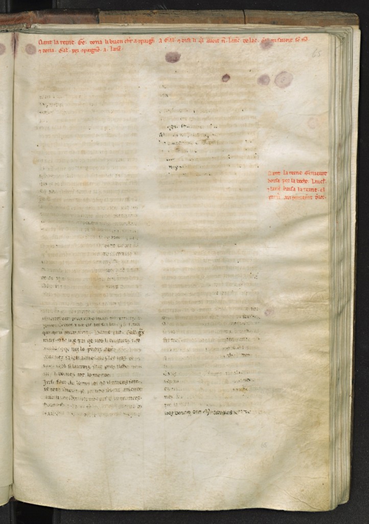 The Arturian romance manuscript Paolo and Francesca were possibly reading,  Plutei 89, inf 61. Fol. 65R © Biblioteca Medicea-Laurenziana.