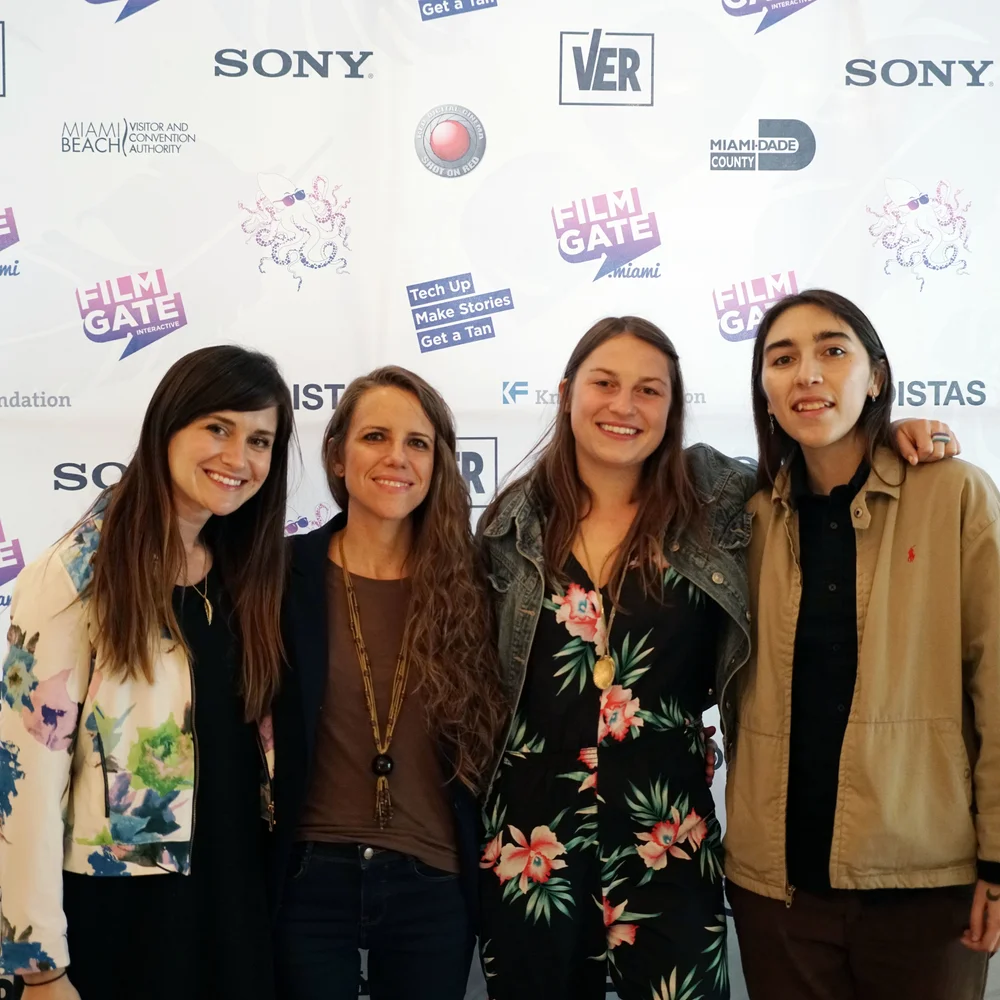 From left to right: Elaine Sheldon (She Does), Almudena Toral (Univision), Sarah Ginsburg (She Does), Maylin Colmenares (WOMANMAY) at Film Gate in Miami, Florida.