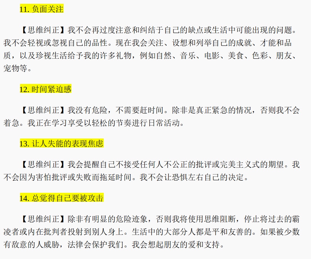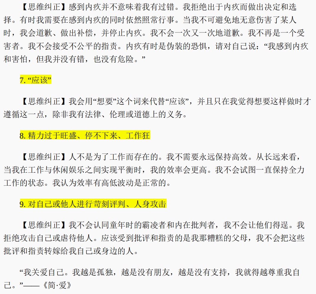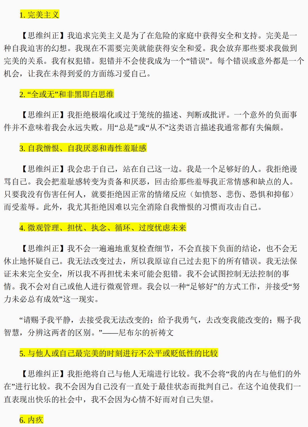 内在批判者的攻击往往无法被自我意识察觉。我们必须学会识别它们,否则就会受它们的摆布,无法进一步缩减内在批判者。一旦我们学会识别内在批判者的攻击,简单的思维阻断或思维替换,就能成为反击内在批判者的有力工具 💪🏻