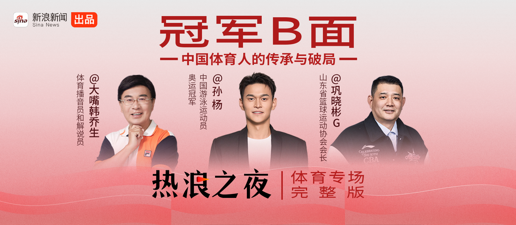 当奥运冠军重返赛场,当篮球名宿转型管理者,体育人如何面对人生的“下半场”?本期节目由资深体育评论员韩乔生主持,与游泳传奇孙杨、篮球名宿巩晓彬展开一场跨越代际的深度对话。