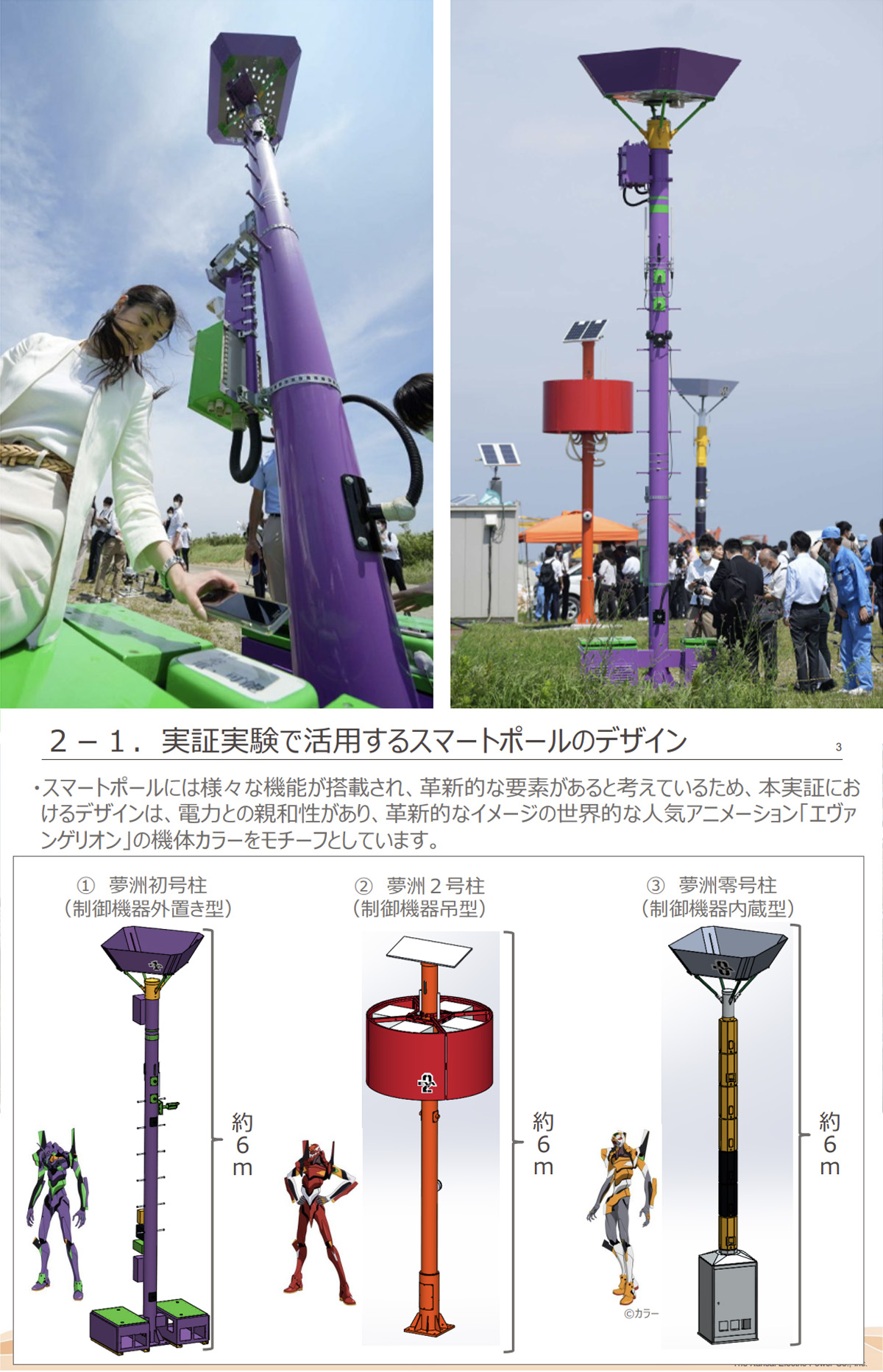 </figure>2025年大阪世博会中,一些“智能电线杆’"(Smart Poles)”也被刻意设计成了eva风格。痞子的美学某种意义上也已经“反向输出”了,并影响了现实世界中的未来基建: