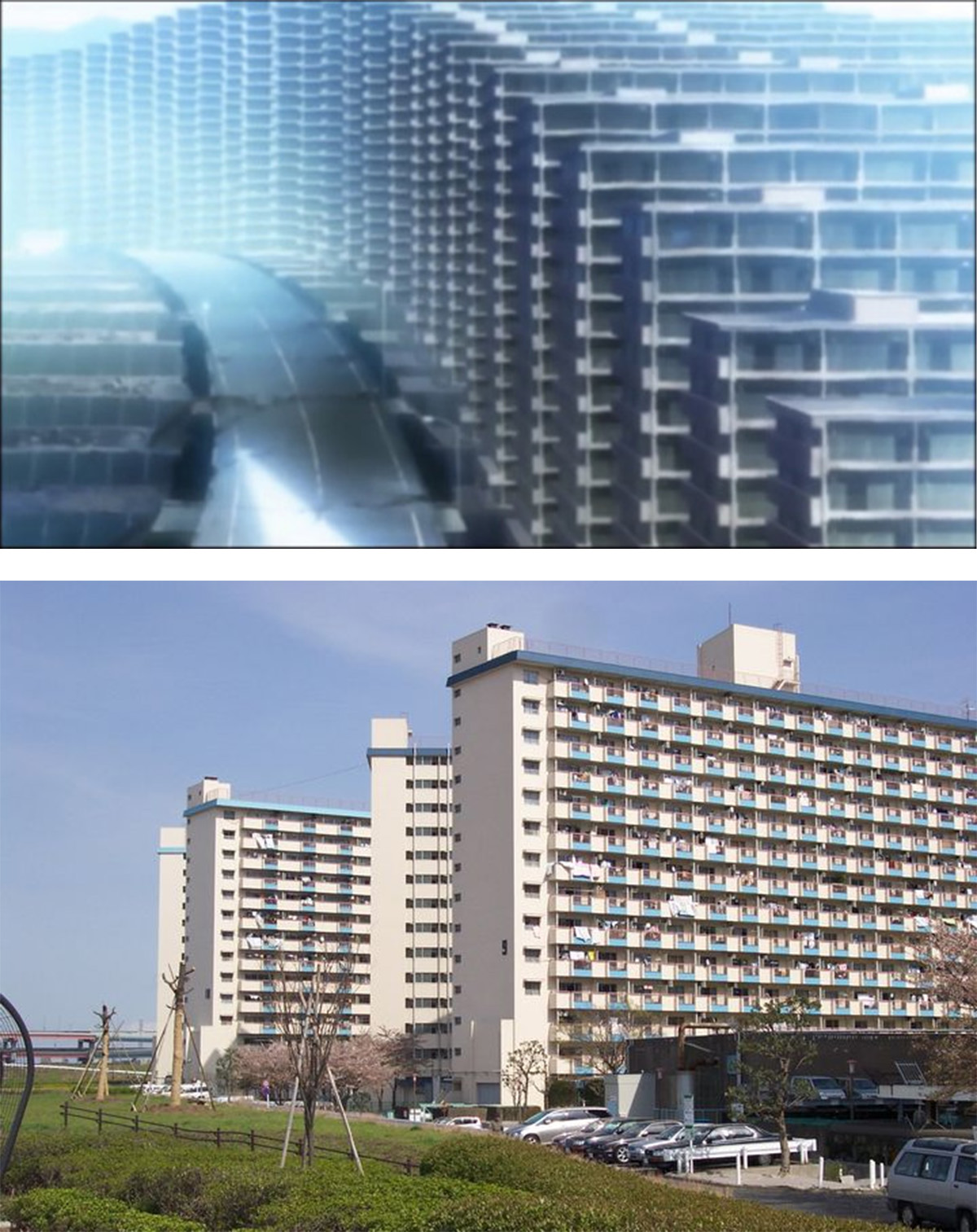 </figure>凌波丽的住处与现实中的“团地”: