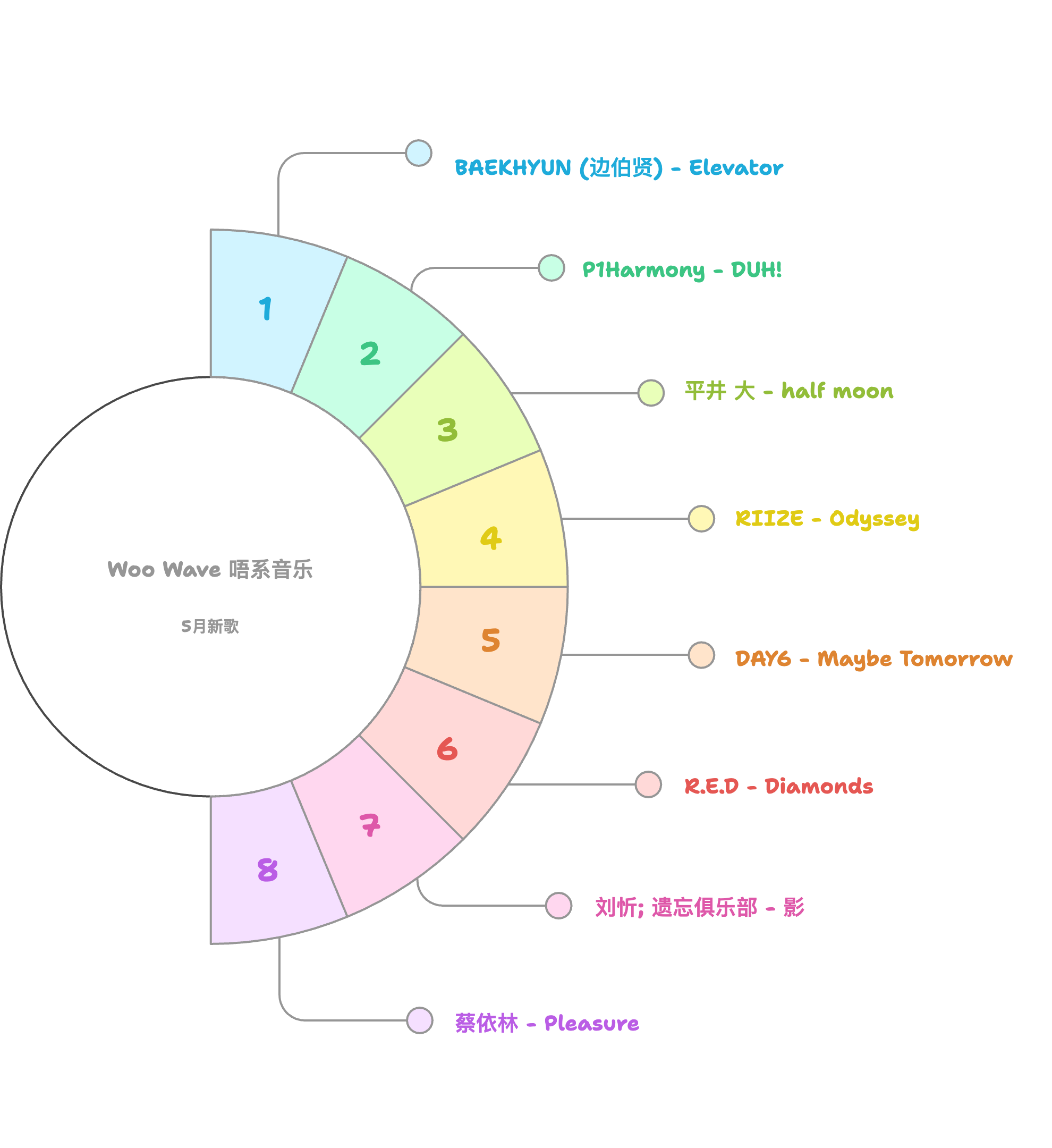 5月新歌|边伯贤、P1Harmony、平井 大、RIIZE、DAY6、R.E.D、遗忘俱乐部、蔡依林