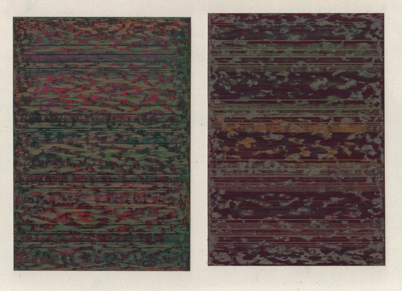 👇用钢尺刮刀在看起来像自然痕迹的画面上划过,留下有力量的直线
