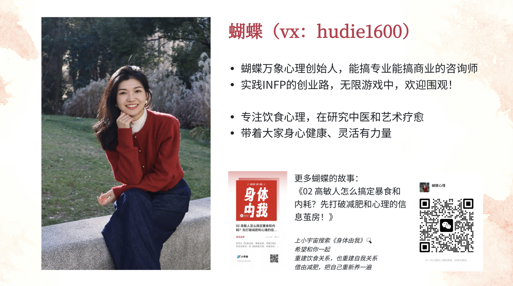 这期节目,饮食心理创业者蝴蝶 ✖️ 营养师 & Life Coach 姜Hazel