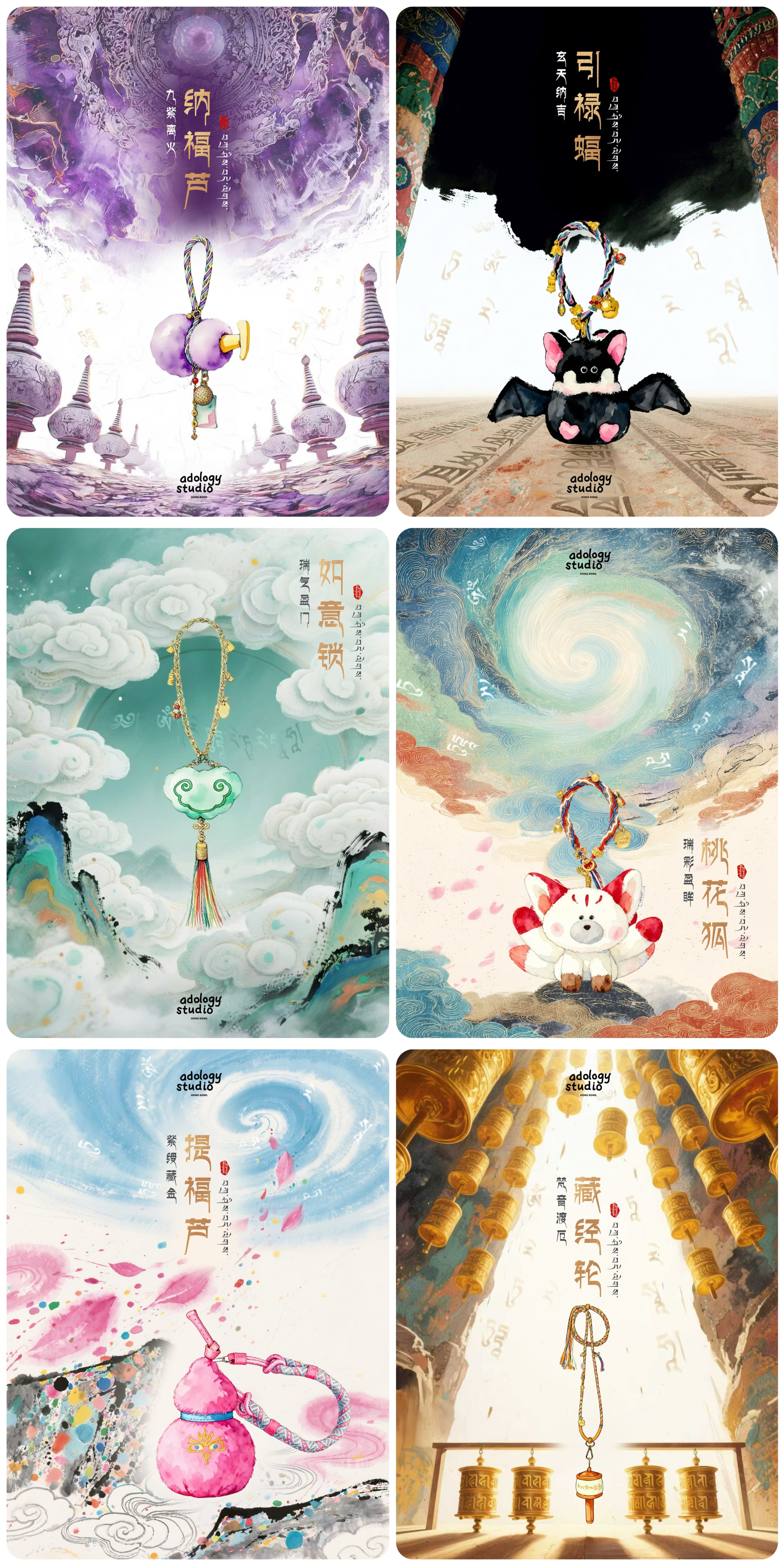 秉承着将传统和潮流融合的灵感,「玄吉系列」不仅将传统的国风玄学元素进行了毛绒化的表达,更将每一个产品赋予了藏地文化的神秘色彩与能量加持。每一款产品皆在云南香格里拉,依照传统流程,进行了祈福。