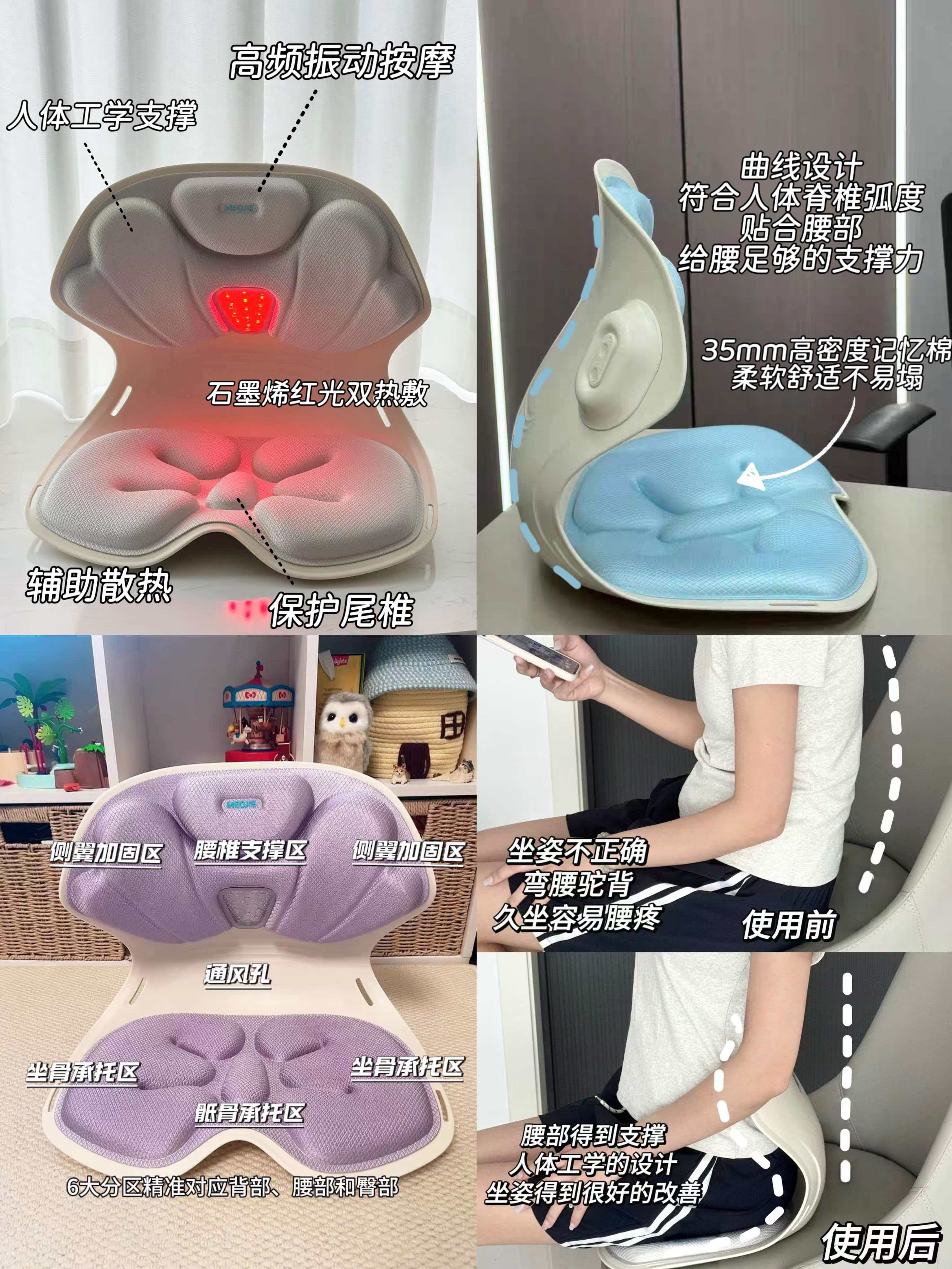 这段时间用下来小屿真的体会到了什么叫做真正的“矫正坐姿治本,按摩热敷治标”。我剪节目、办公、看剧都会把它放在椅子上督促我拥有一个好的坐姿,再打开按摩+热敷功能放松,腰背真的放松很多,坐一整天也不容易腿麻腰酸。有赠送运险和七天无理由,大家可以放心尝试。