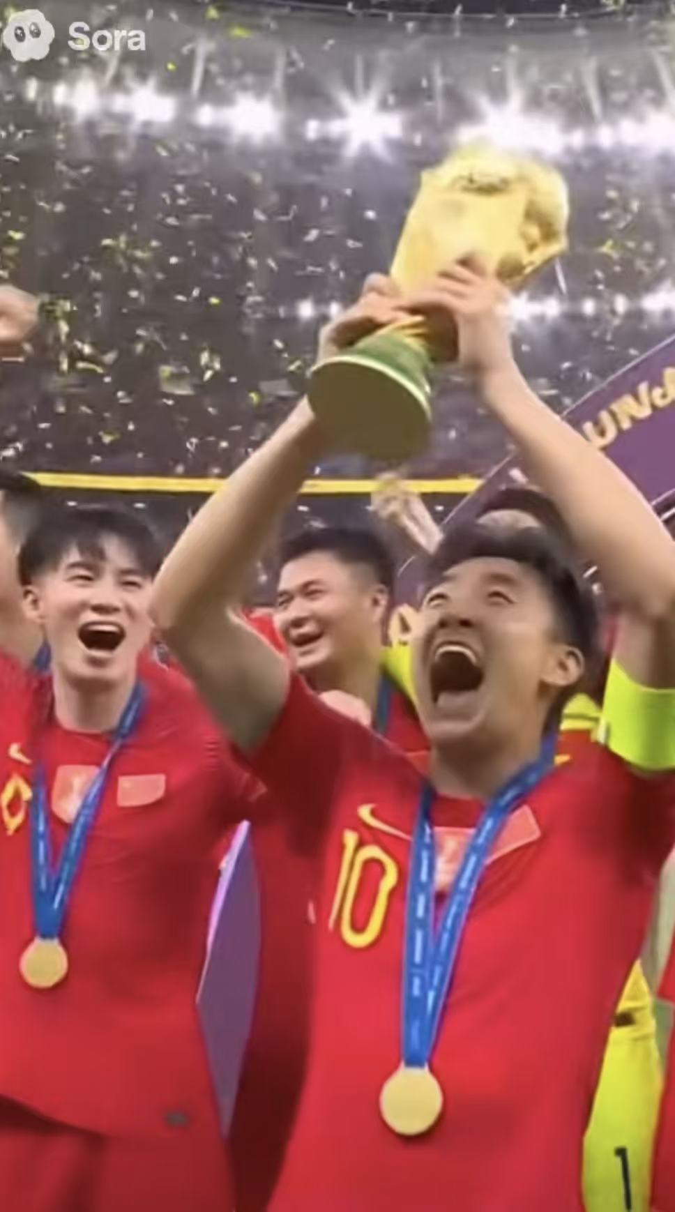中国男足砥砺前行勇夺世界杯冠军(AI生成)(也不一定听得到)