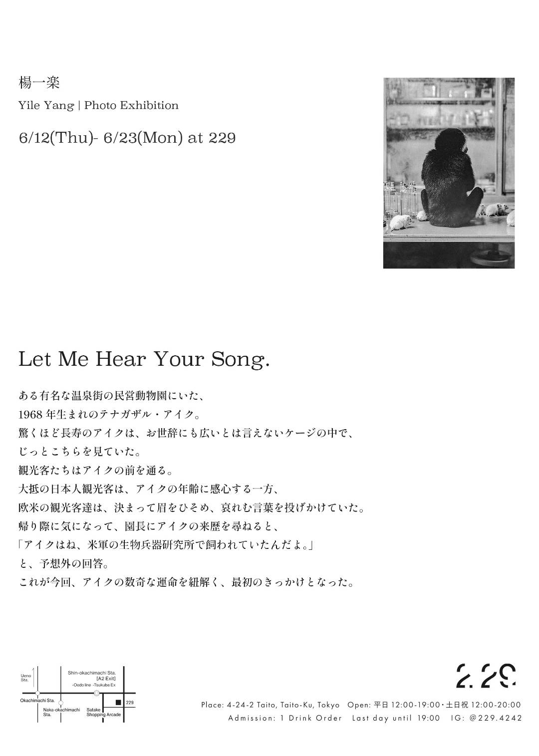 今天我们也会特别提到这段故事所启发的摄影展《Let Me Hear Your Song》,由杨一乐企划,将于6月12日(周四)至6月23日(周一)在东京的229空间举行。展览以アイク为线索,透过摄影与叙述,尝试描绘一个“被困住的生命”如何在历史缝隙中发出自己的声音。