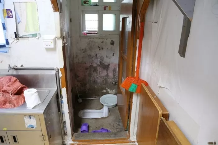 </figure>小明说,囚室内部比较接近下图状态,墙皮脱落发霉,房间内有异味