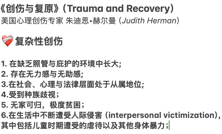 🔘深层问题:来访(丹尼)因童年经历“文化灭绝”产生复杂性创伤(CPTSD),有严重的人格解体防御