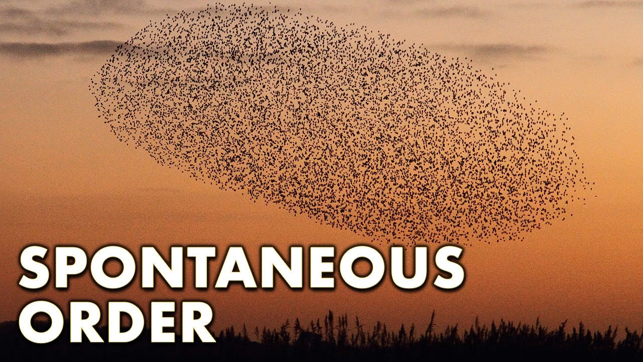 So, what if I were to tell you that there’s an entirely different concept of societal order—one that not only rejects hierarchical “order” but actually refutes the concept of top-down control? Well, there is, and it’s called “spontaneous order.”