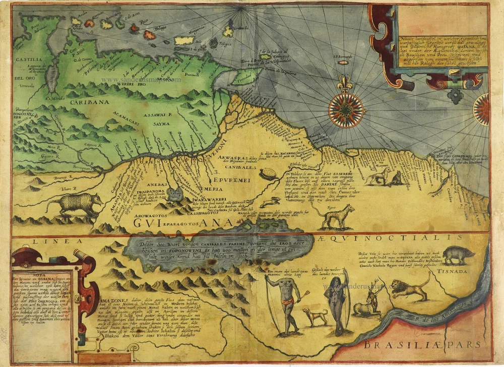 Mapa de Theodore de Bry (1599) com a Cidade de "Manoa El Dorado” ao centro.