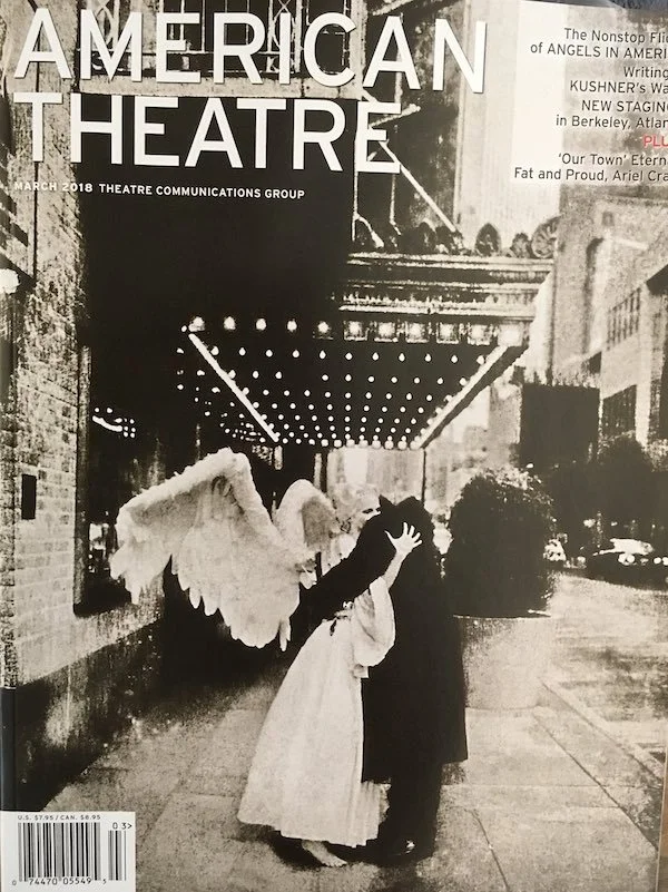 Even if you own a theatre textbook, this probably isn’t the shot of Ellen as the original Angel in America depicted therein—but because I mentioned it, I wanted to include a memorable visual. This image comes from a rare Polaroid by Annie Leibovitz of Ellen and Tony Kushner outside the Walter Kerr Theater in 1993, deployed for another purpose in 2018 for which Theatre Communications Group paid dearly. Because it’s pretty awesome, I’ll leave it here until the lawyers ask me to replace it.