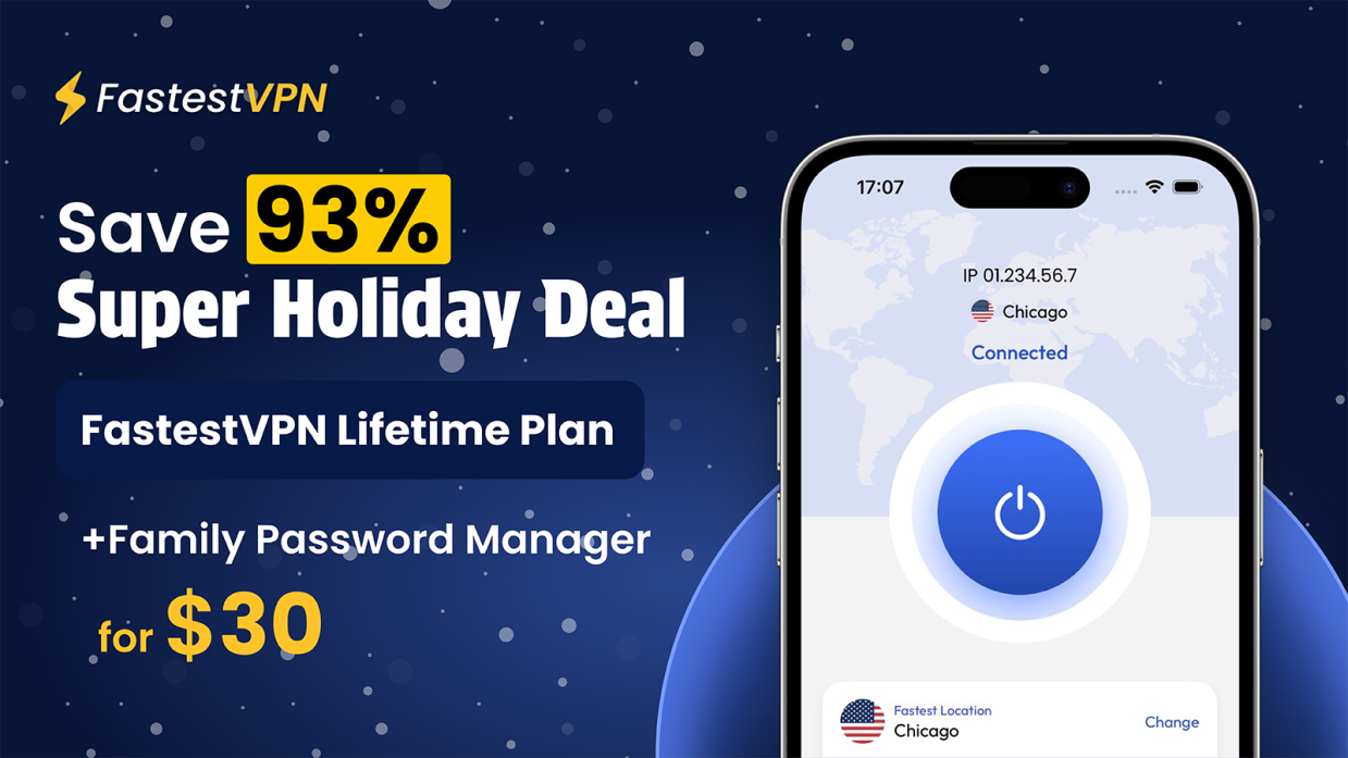 For a limited time, users can unlock complete online protection with the FastestVPN Lifetime Plan and get a Family Password Manager absolutely free. The bonus? It costs just $30 (save 93%).