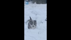 Cina, cucciolo di cane da pastore sfida la neve per radunare le pecore