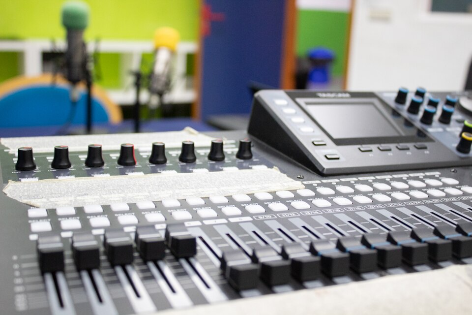 Featured image of a soundboard at a college radio station via Wikimedia Commons (CC BY-SA 4.0).