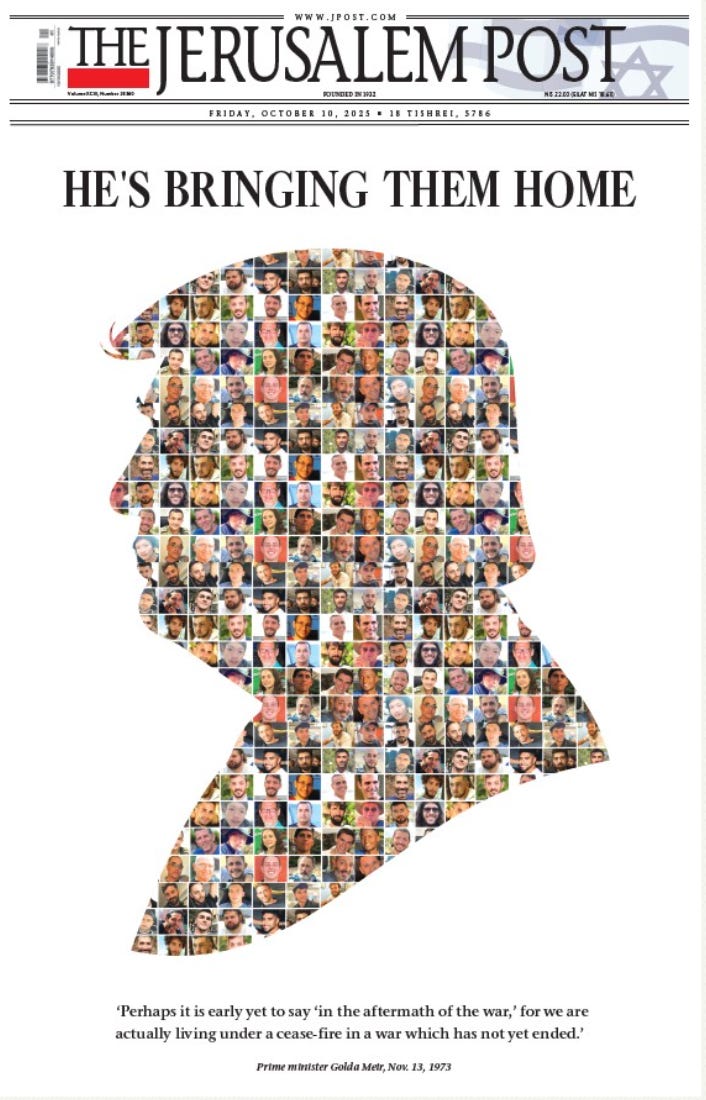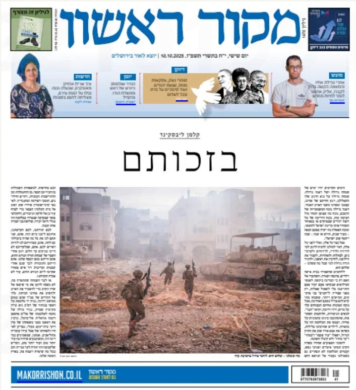 Eschewing all politics, the headline pointed to an obvious truth that must be stated time and again. As Jared Kushner noted last night in his speech in Tel Aviv, this day would not have come without the hundreds of thousands of soldiers, some in their regular service and many of them reservists with families and jobs, too many of whom paid the ultimate price, who dropped everything and went to war to restore Israel’s security.