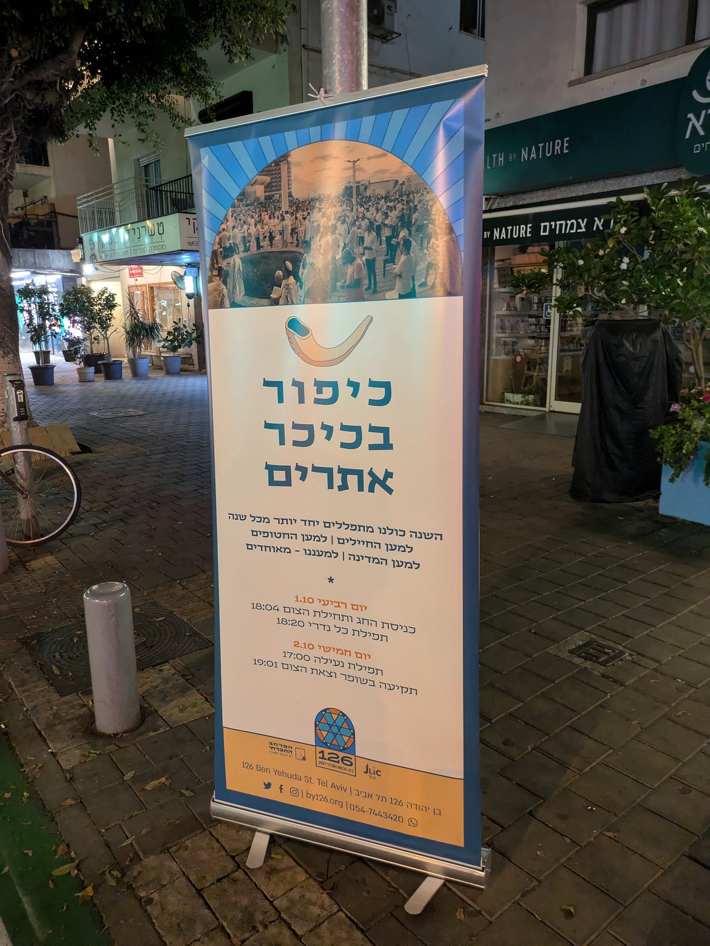Shortly after Yom Kippur, I received these videos of the conclusion of the public Tel Aviv Yom Kippur service conducted by Rabbi Joe Wolfson (who was on the IFTI podcast just about a year ago). If you look at the videos carefully, you’ll see some “classically” religious people there, but also many non-religious people. Men without kippot, women in pants, men and women sitting together, no mechitzah, and thousands of people at Kikar Atarim (not far from the Tel Aviv beach and near the iconic Gordon pool, if you know it …) — proving that Israelis of all (ok, most) walks of life can spend the year’s holiest day together.