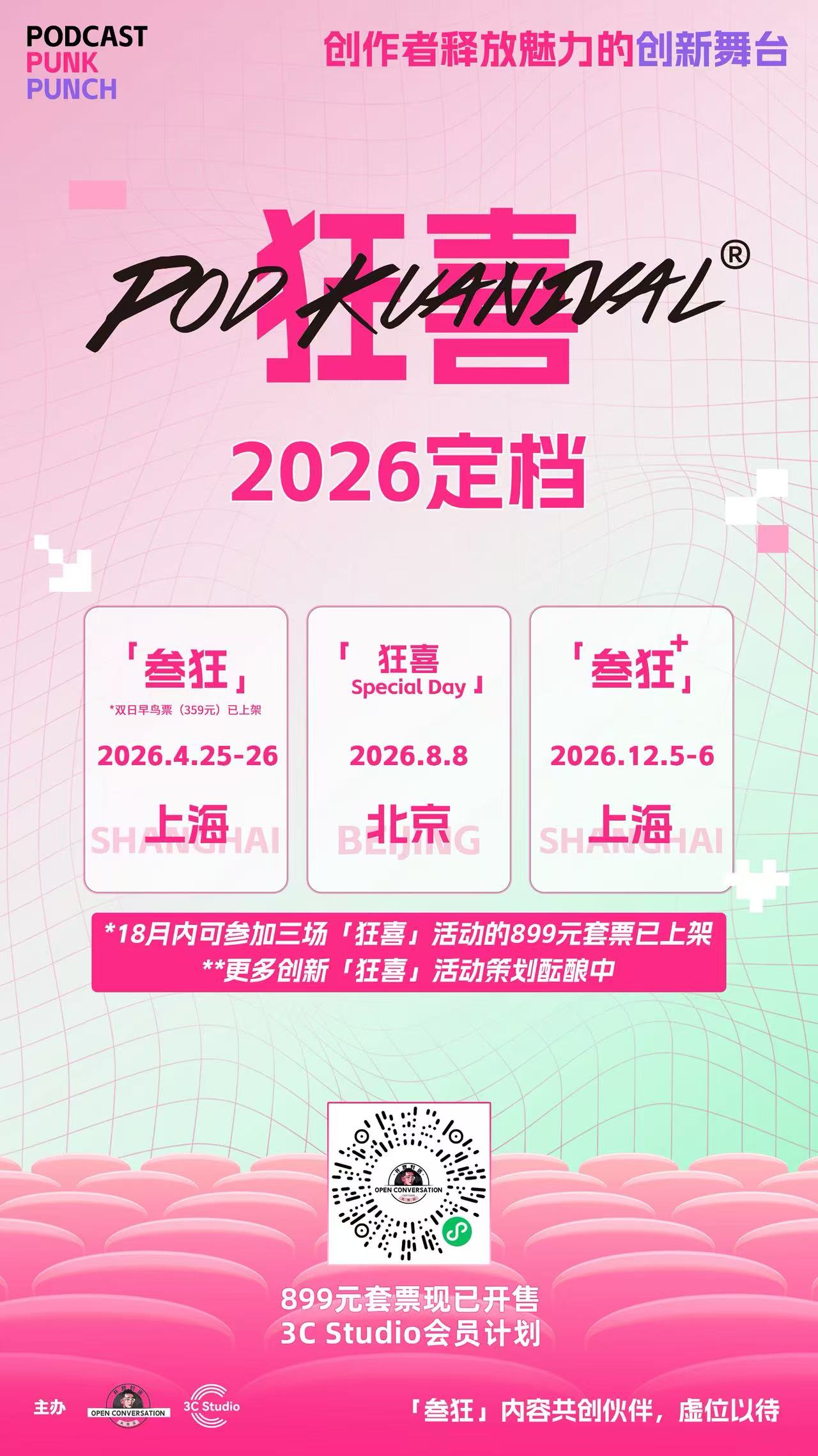 本期节目录制于2025年11月1日「第四届狂喜播客节·贰狂+」活动现场,一起录制嘉宾是: