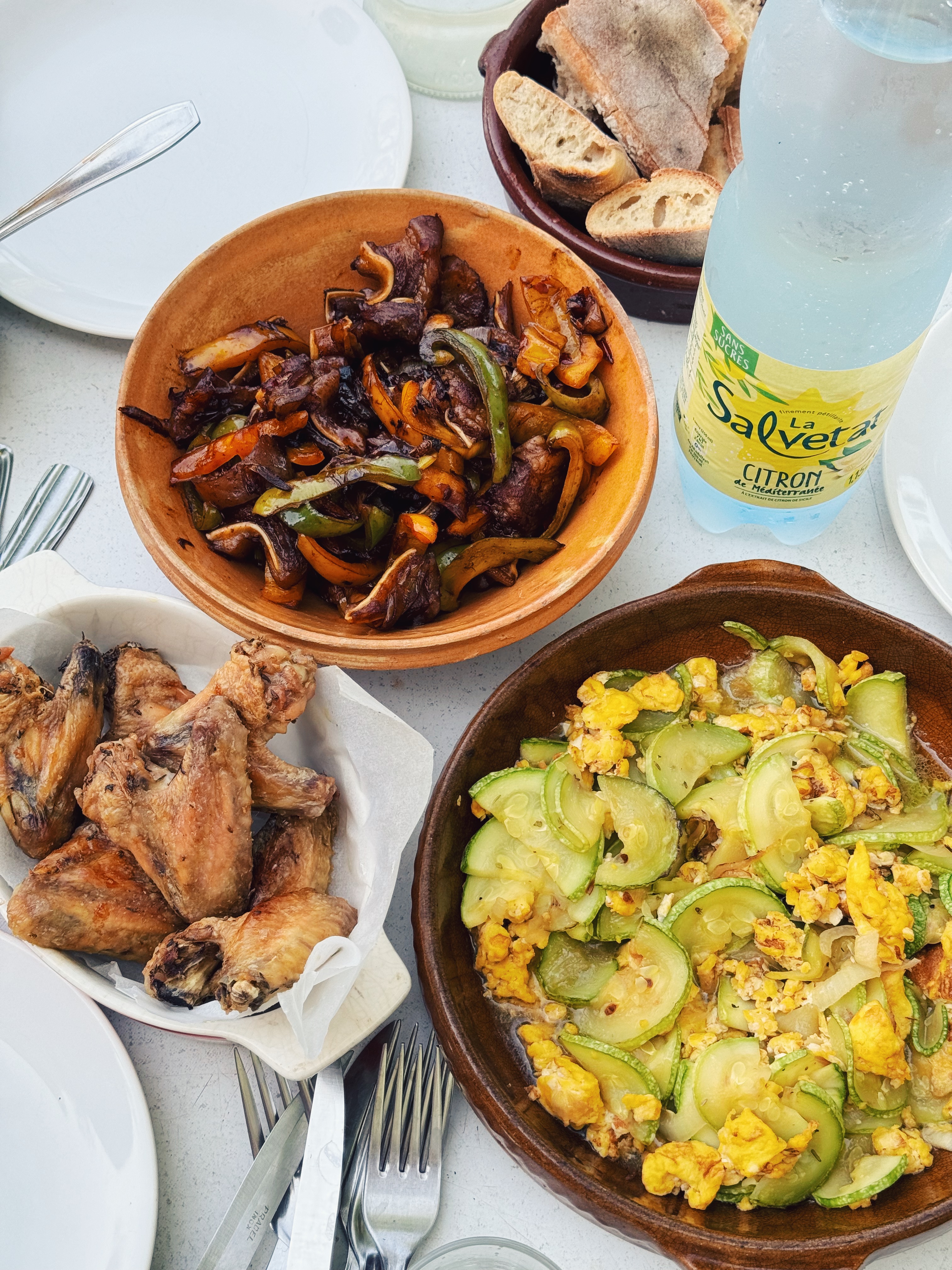 <figure>—中华小当家第一餐:辣炒猪耳,盐烤鸡翅,鸡蛋西葫芦