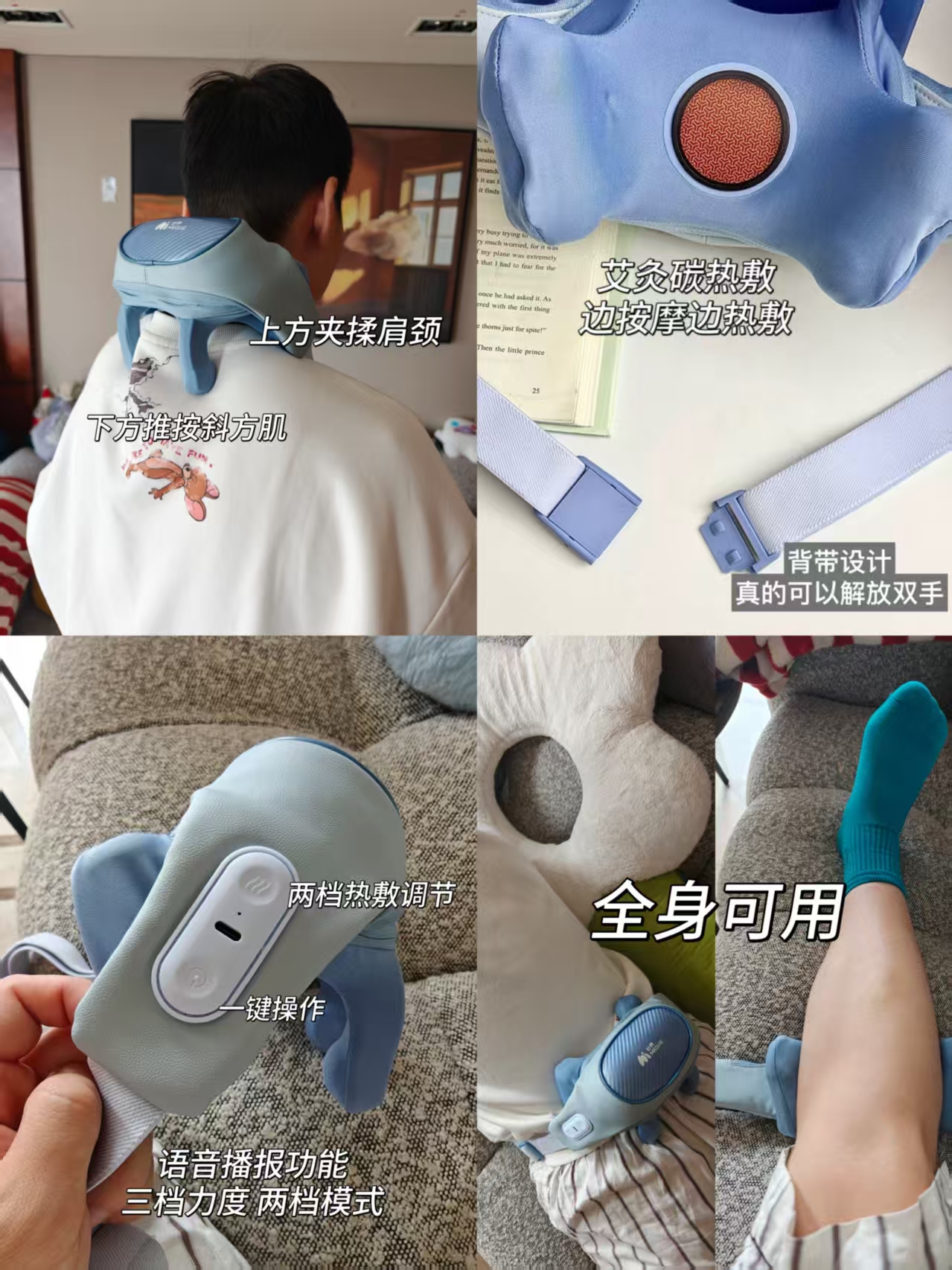 ●穿戴式设计,可以完全解放双手,一边做自己的事一边按摩。