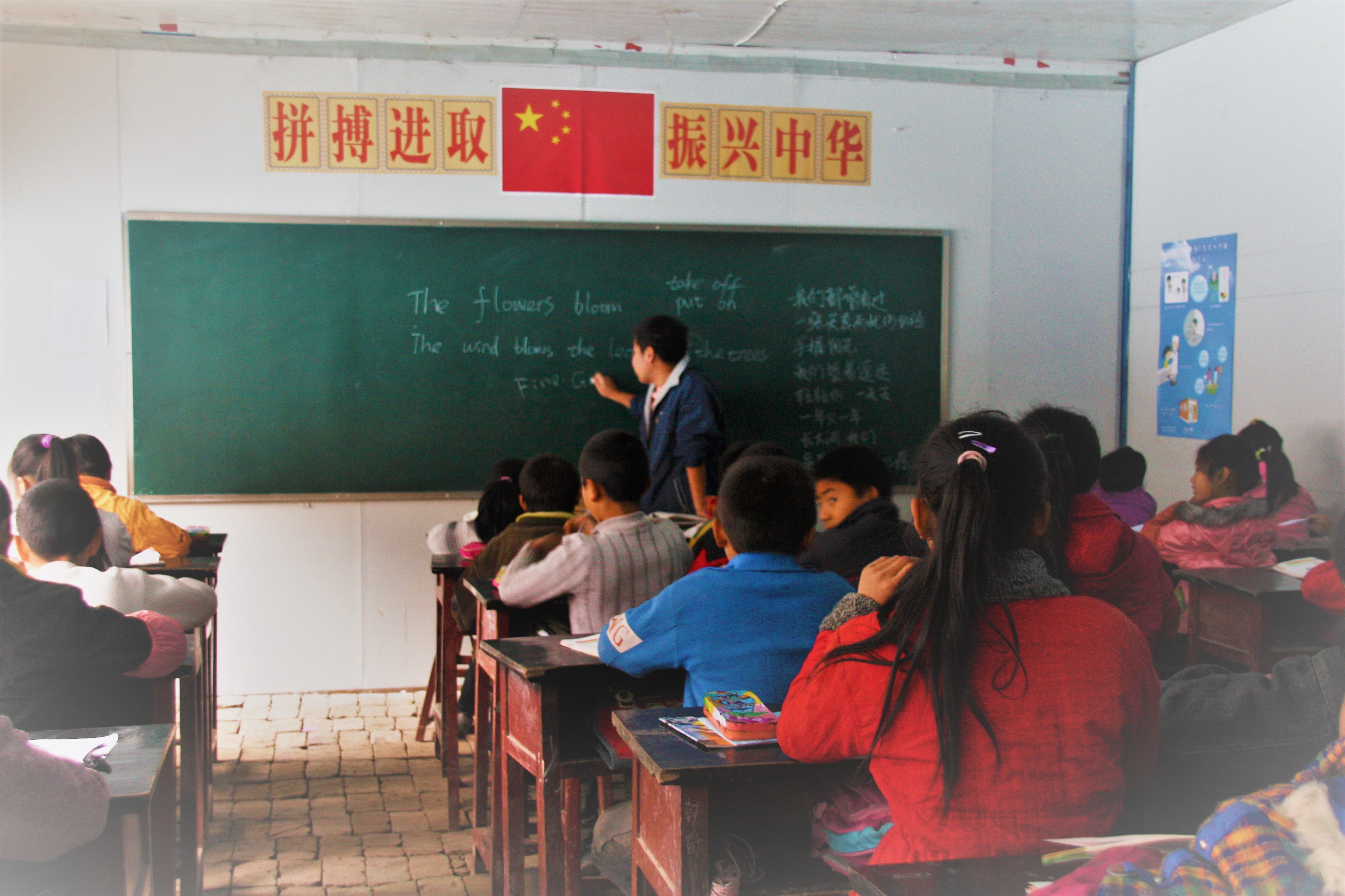 05:43 甘肃省陇南市文县,2008 年汶川大地震导致学校被毁,图中为临时的简易帐篷教室,摄于 2009 年 11 月(嘉宾供图)
