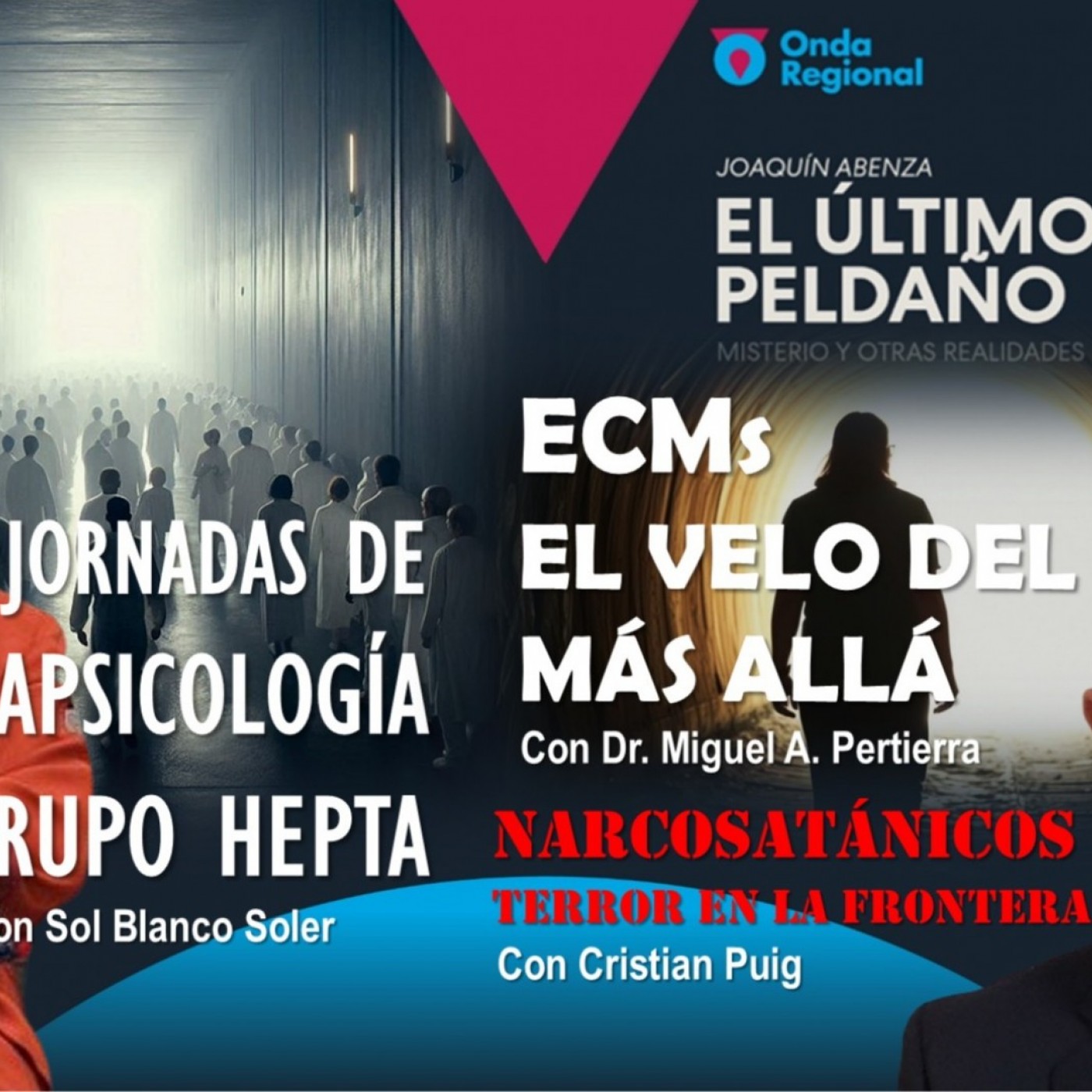 XVII JORNADAS DE PARAPSICOLOGÍA DEL GRUPOP HEPTAEl histórico “Grupo Hepta” organiza sus XVII Jornadas de Parapsicología en Madrid, que arrancarán el 12 de enero con Javier Sierra, y continuarán hasta el 16 de marzo, con la intervención de los ponentes: Dr. José Cabrera, Óscar Fábrega, José Manuel Nieves, Jesús Callejo, Javier Pérez Campos, Pablo Rajienstein, Enrique Echazarra y Joaquín Abenza, que intervendrá el 9 de marzo con la ponencia “Experiencias en los límites de la realidad. Testimonios extraordinarios analizados desde la parapsicología científica”.Contamos con Sol Blanco Soler, licenciada en Ciencias de la Información y parte fundamental del Grupo Hepta, que nos informó sobre los ponentes y contenidos de este evento. DESCUBRIENDO EL VELO DEL MÁS ALLÁEl Dr. Miguel Ángel Pertierra ha realizado profundas investigaciones sobre el fenómeno de las “experiencias cercanas a la muerte (ECM)”, que le han llevado a conclusiones que son muy incómodas a la ciencia actual. Ha recopilado evidencias, pruebas, indicios y explicaciones sobre qué es lo que ocurre después de fallecer una persona, y durante el proceso del tránsito a través de los métodos más novedosos además de su propia experiencia. Con todo ello ha publicado un libro de título: "No tengo miedo a la muerte".El doctor Miguel Ángel Pertierra estuvo en el programa para hablarnos sobre sus investigaciones y vivencias acerca de las experiencias cercanas a la muerte. TERROR EN LA FRONTERAEn marzo de 1989, la frontera entre Texas y México se convirtió en escenario de uno de los episodios más macabros del siglo XX. Lo que comenzó como la desaparición de un joven estudiante estadounidense, Mark Kilroy, acabó destapando un culto criminal vinculado al narcotráfico, una oscura religión y sacrificios humanos. Durante tres semanas buscaron sin descanso al joven desparecido, hasta que una patrulla policial, al seguir a un vehículo sospechoso, llegó a un rancho llamado Santa Elena. Allí, bajo tierra, encontraron el horror.El investigador y escritor Cristian Puig nos trajo otro capítulo de la serie “Tras la última pista” dedicado el espeluznante caso de “Los "narcosatánicos" de Matamoros (Mexico)”. Dirección, guion y presentación: Joaquín Abenza.Producción, documentación y redes sociales: María José Garnández.Blog del programa: http://www.elultimopeldano.blogspot.com.es/Programas emitidos en ORM: https://www.orm.es/programas/elultimopeldano/Programas emitidos en 7 TV: https://www.la7tv.es/blog/section/el-ultimo-peldano/WhatsApp: +34 644 823 513Correo electrónico: escaleradelmisterio@rtrm.es