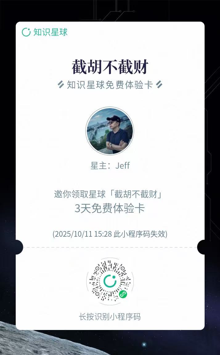 在各位听友们的支持下,本节目的同名知识星球现已开通。听友福利,都可以领取限时3天的知识星球体验卡。我会在星球里分享关于股票、房地产、债券、黄金、公募基金、私募基金、投资方法论、资产配置、财商教育等内容。欢迎大家加入并找到志同道合的一群人,在提高自我认知和能力圈的路上坦诚分享与交流,成就思想和财富双自由的精彩人生!