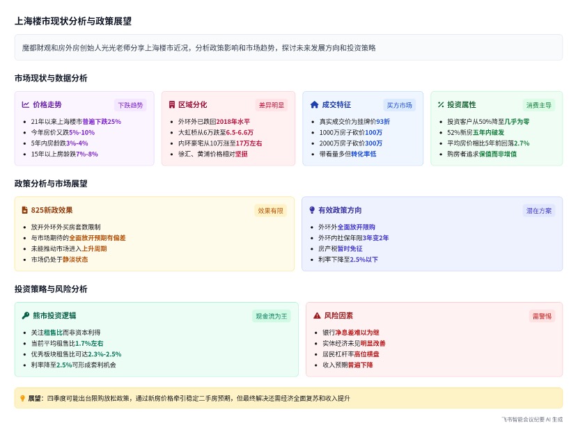 本次会议围绕上海房地产市场展开深入探讨,包括市场现状、政策影响、购房策略及未来趋势等内容,旨在为听众提供全面的楼市信息和分析,内容如下: