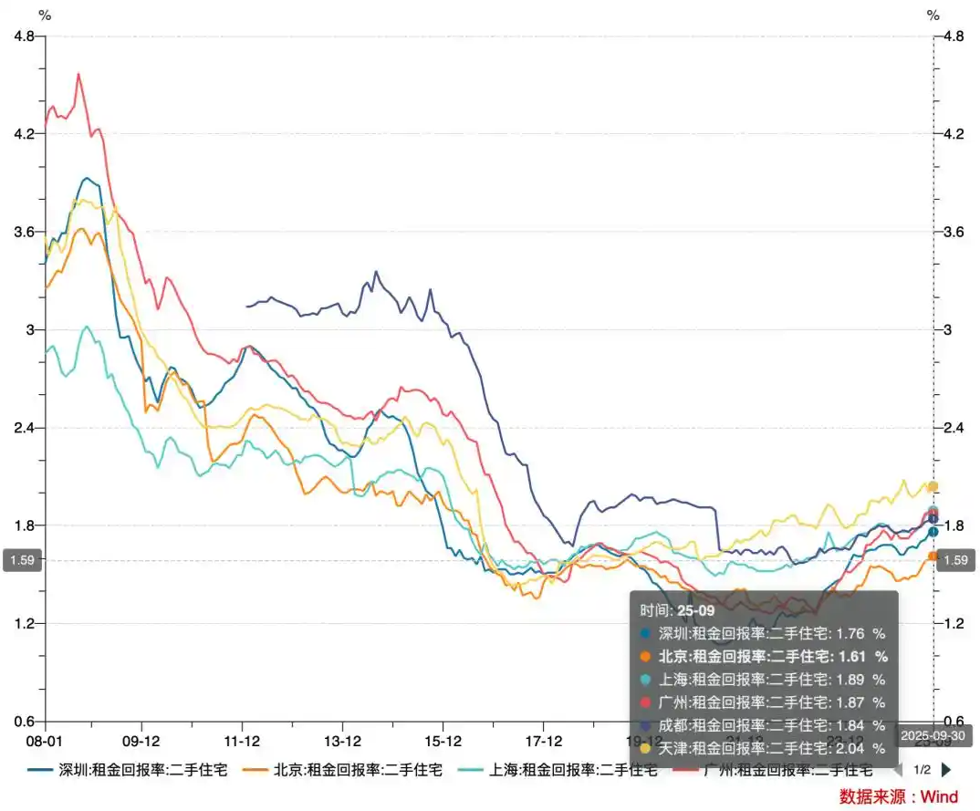 政策效果预期:当利率下降接近或低于部分板块租金收益率时,存在套利可能性,再辅以政策支持和信心提升,房价有望稳定。