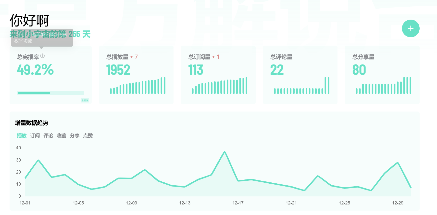 </figure>包括年底的总结以及电影介绍,今年我们一共出了24期节目,收获了1900多的播放量,以及113位订阅者,超过了我们1000播放量、100位订阅者的目标。明年我们会继续努力给大家带来好的节目。