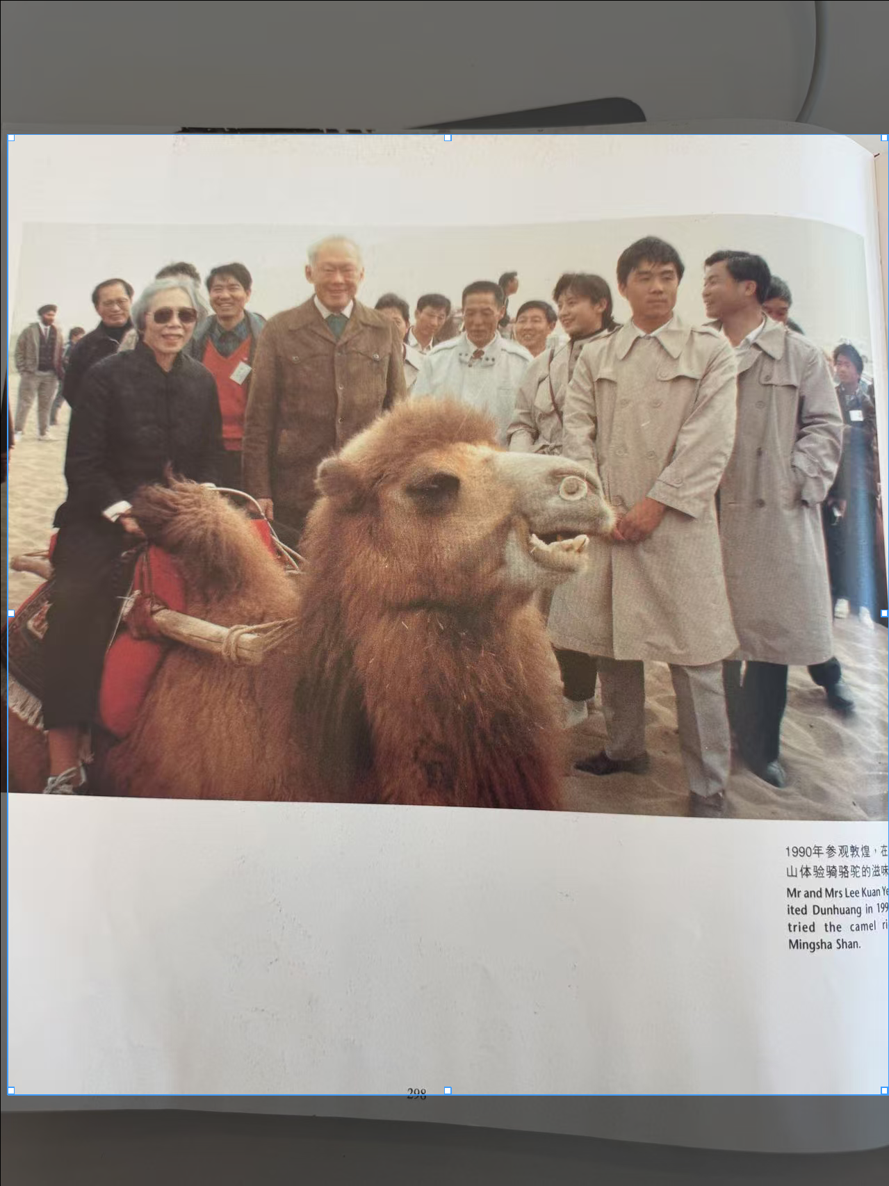 </figure>李光耀夫妇在鸣沙山骑骆驼