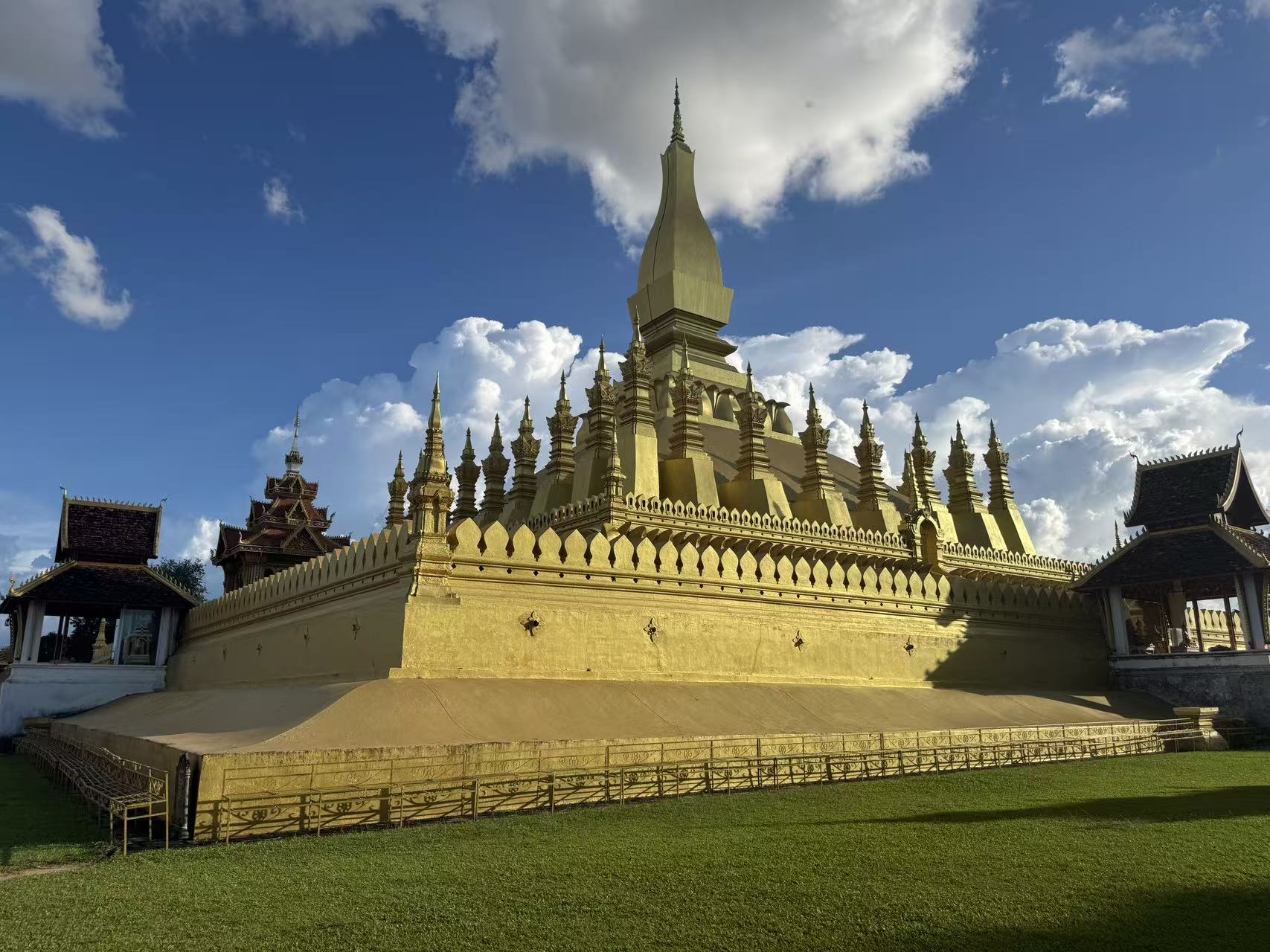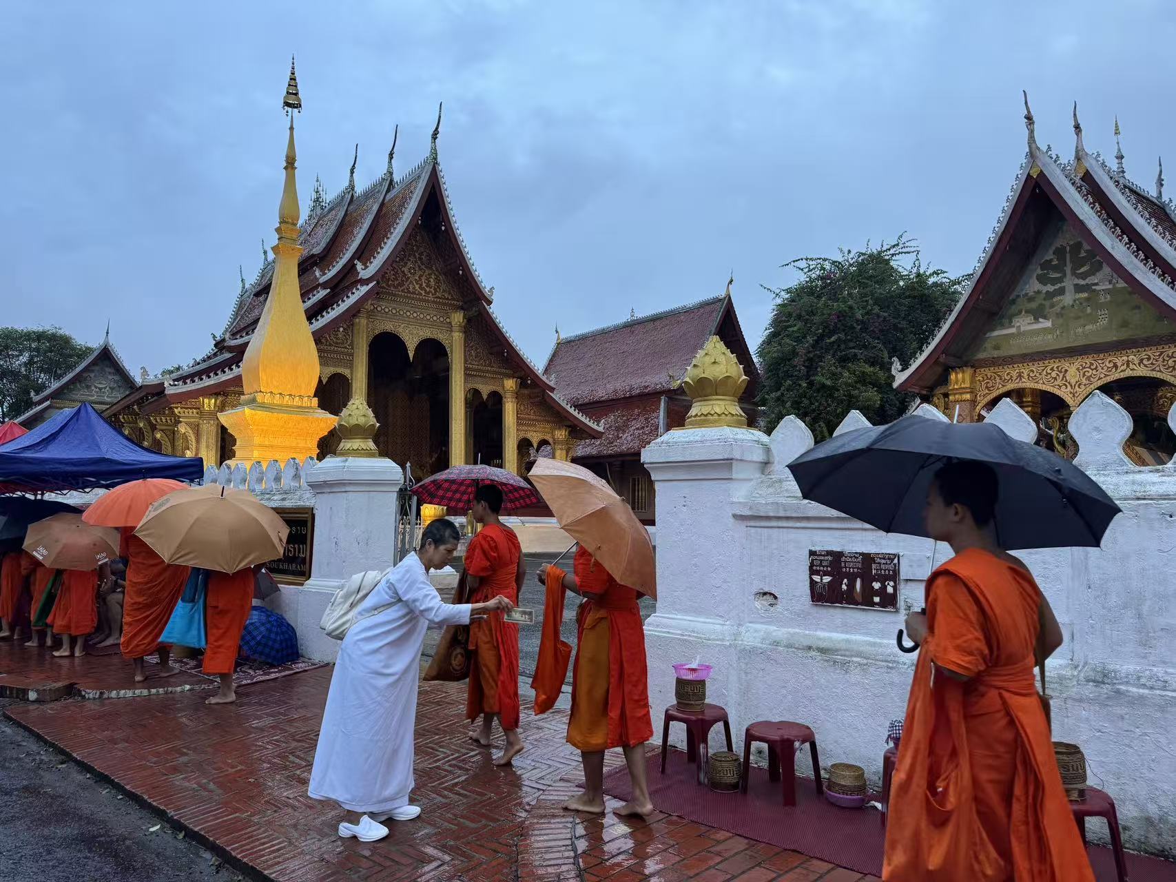 这里的节奏像被时间泡过的茶:中午的阳光懒散地洒在琅勃拉邦的屋檐上,僧侣清晨布施的脚步与风声交织;万象的街头,则是铁皮“萝莉车”的喧闹、河边泰式火锅mookata的香气,还有金色塔銮寺在夕阳中闪耀的光。