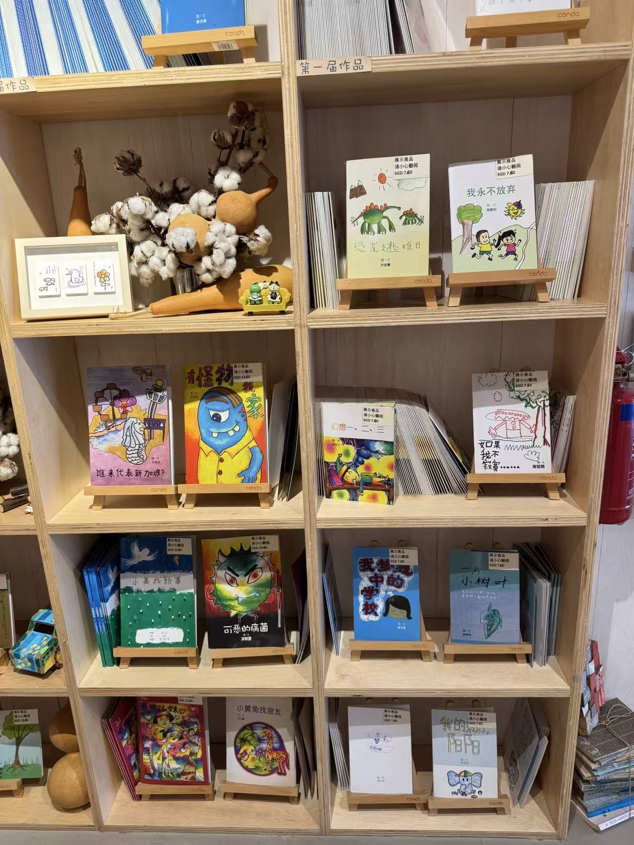 19:52 :每两年举办绘本大赛,获奖作品可出版,柜台上有很多小朋友自己创作的绘本,充满童趣