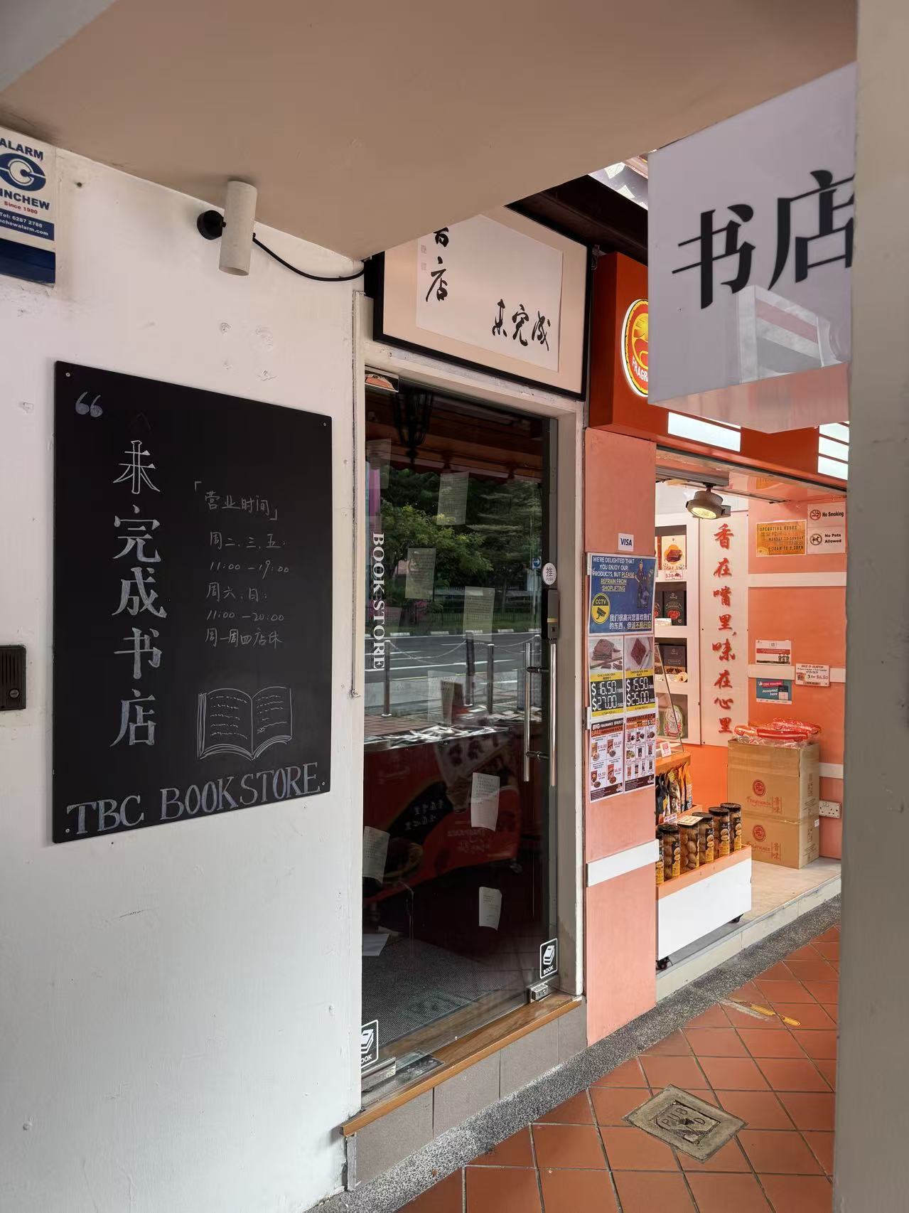 08:22 书店位于牛车水(Chinatown),附近有多家小贩中心,可以达到精神和身体的双重享受。