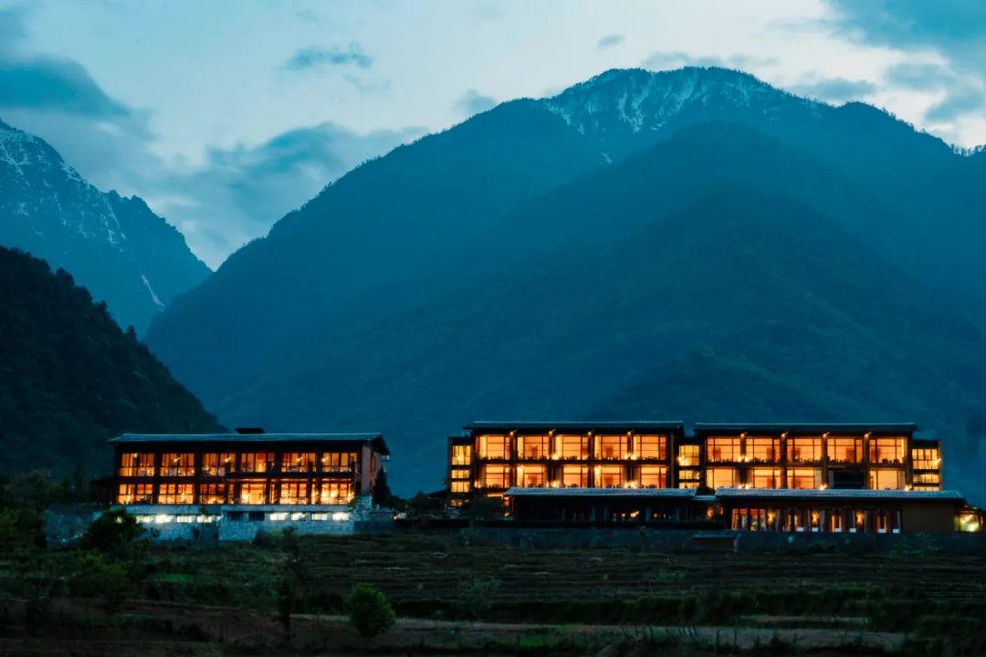 ▲松赞丙中洛山居:位于丙中洛镇东风村,背靠群山,面朝稻田,与村落共生共息。