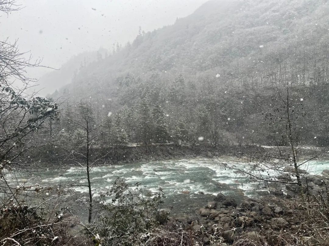 ▲娜松拍摄的冬季独龙江雪景,雪没有那么寂静,流水也没有那么喧嚣。