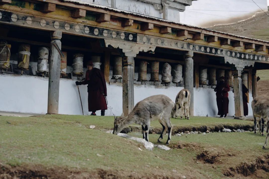 ▲芒康尼果寺:“尼果”藏语意为“神山之冠”。这座由喇嘛吉尊曲扎加措创建的古老寺院,静驻在这里已超过两百年,有数千只岩羊、雪鸡、雉鹑、藏马鸡等生灵自在栖息于寺院周围,与僧尼们和谐共生。