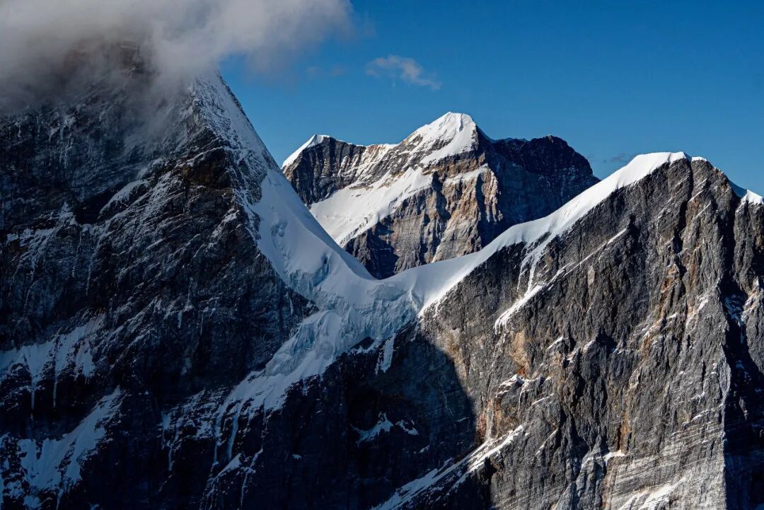 ▲透过央迈勇峰的山脊看仙乃日峰。