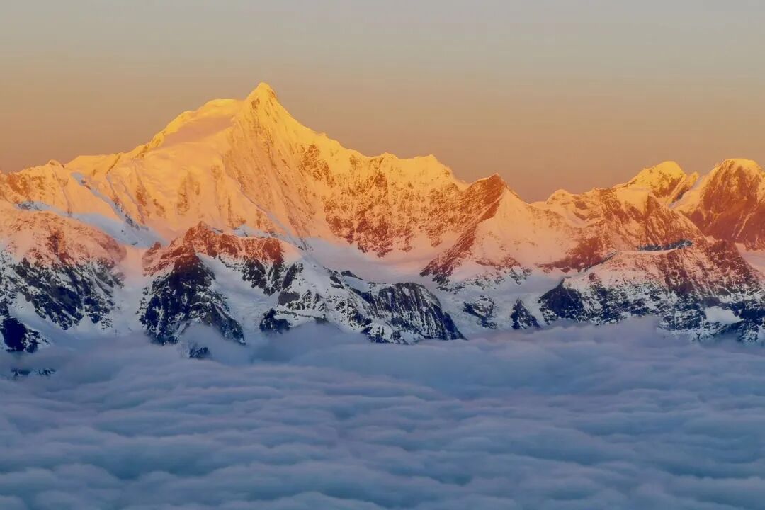 ▲飞跃云层,看见梅里雪山主峰卡瓦格博的日照金山。
