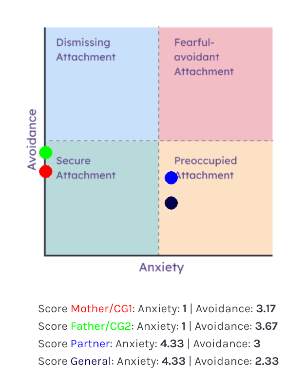 安全型: 对自身和他人持积极看法,表现出较低的依恋焦虑和回避水平,自信且在关系中感到自在。