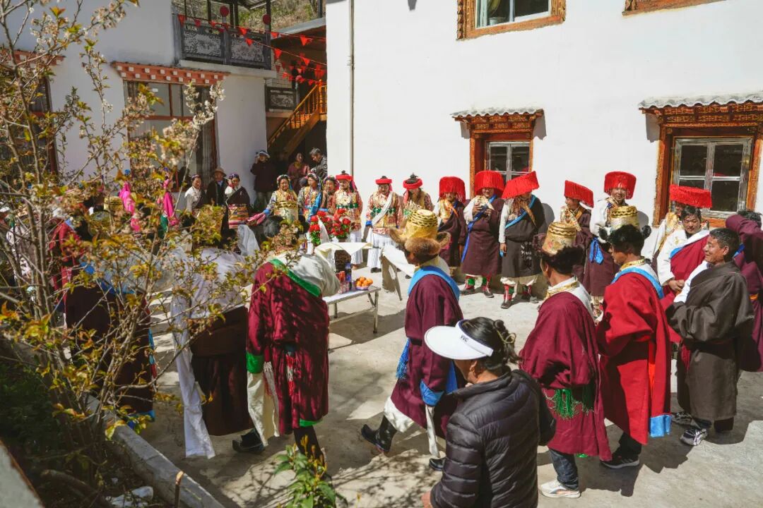 ▲在婚礼上,奔子栏人也会唱跳锅庄,载歌载舞。其中出嫁歌有欢欣的曲调,也有哀婉的曲调,表达新娘对娘家依依不舍的留恋。