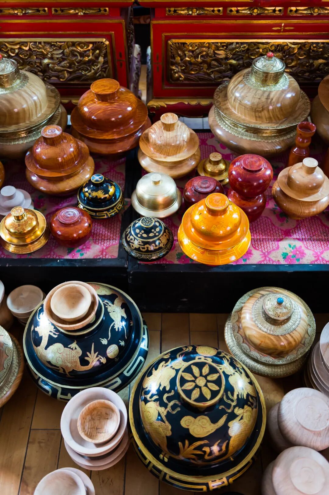 ▲奔子栏木碗:木碗因其轻巧便携、不烫手、不烫口、不怕摔等特性为藏民所钟爱,而奔子栏被称为“木碗之乡”。