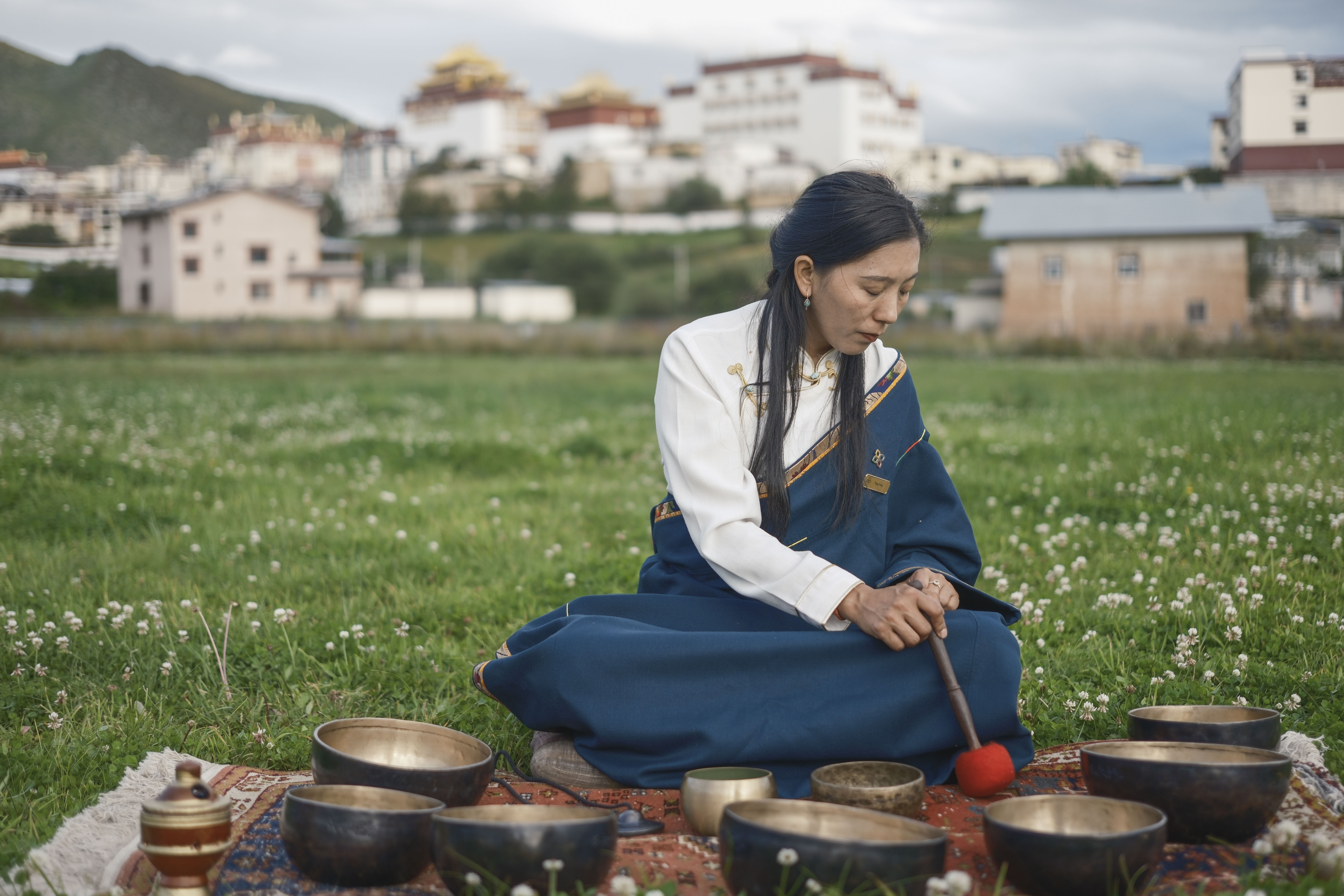 </figure>▲唱诵、颂钵和冥想,都让央宗感到自在和平静。